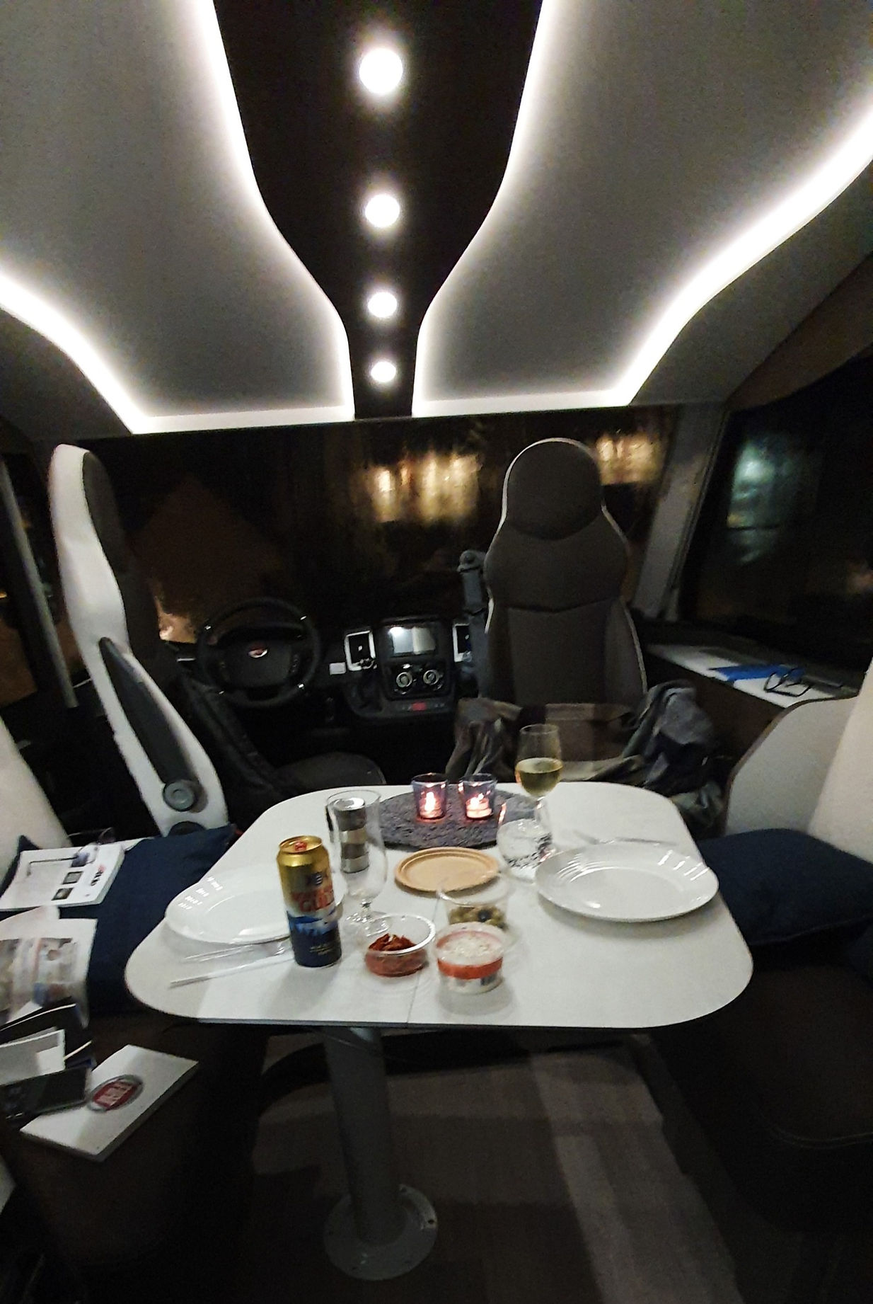 Vi var fullstendig utslitt av alle inntrykk og all spenningen det har vært i denne bobilprosessen, så etter et veldig enkelt måltid ble det tidlig kvelden på oss.