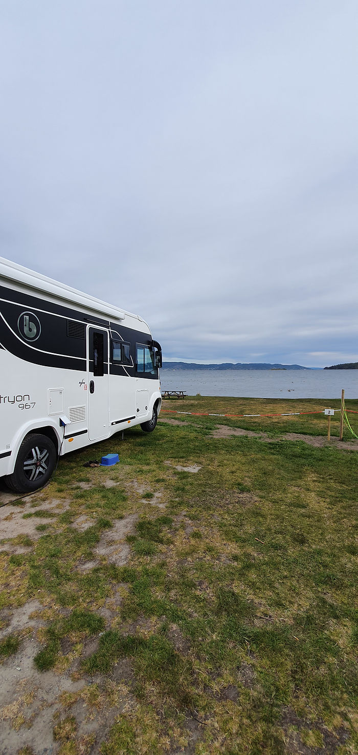 Vi tok de tre første nettene på Nes camping på Jeløya. Vidar pendlet derfra til jobb på torsdagen og fredagen.