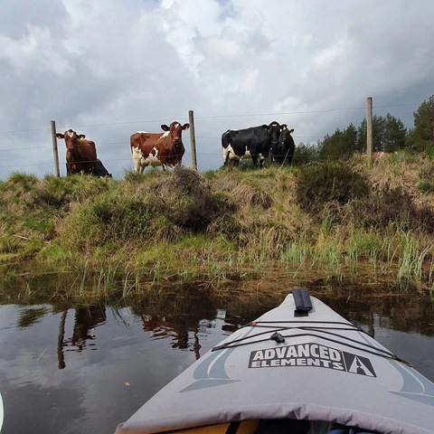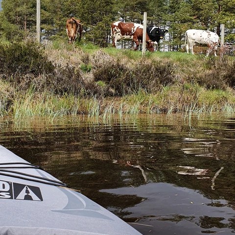 På veien traff vi på en flokk med veldig nysgjerrige kyr, som fulgte etter oss samme hvilken vei vi padlet.