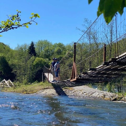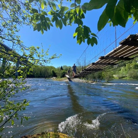 En fin hengebru over til en bitteliten øy var det også langs veien.