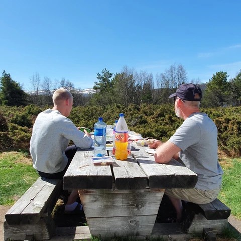 Lars hadde ønsket at vi kunne grille når vi kom på besøk. Så vi hadde med grillen og hadde kjøpt inne masse god grillmat. Så det ble et deilig grillmåltid på utsiden av bobilen (ingen bilder ble tatt, da alle var for opptatt med å spise).