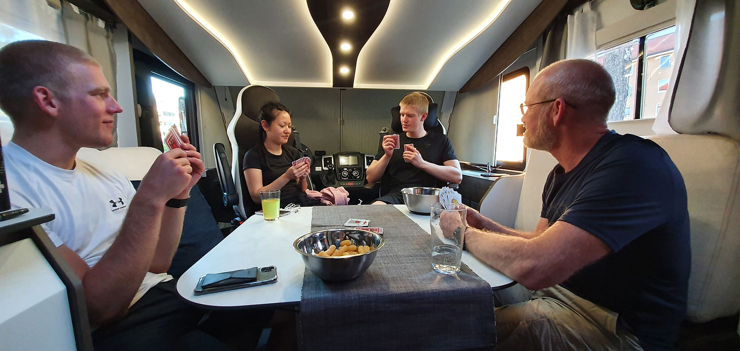 Vi avsluttet kvelden med yatzy og kortspill i bobilen.