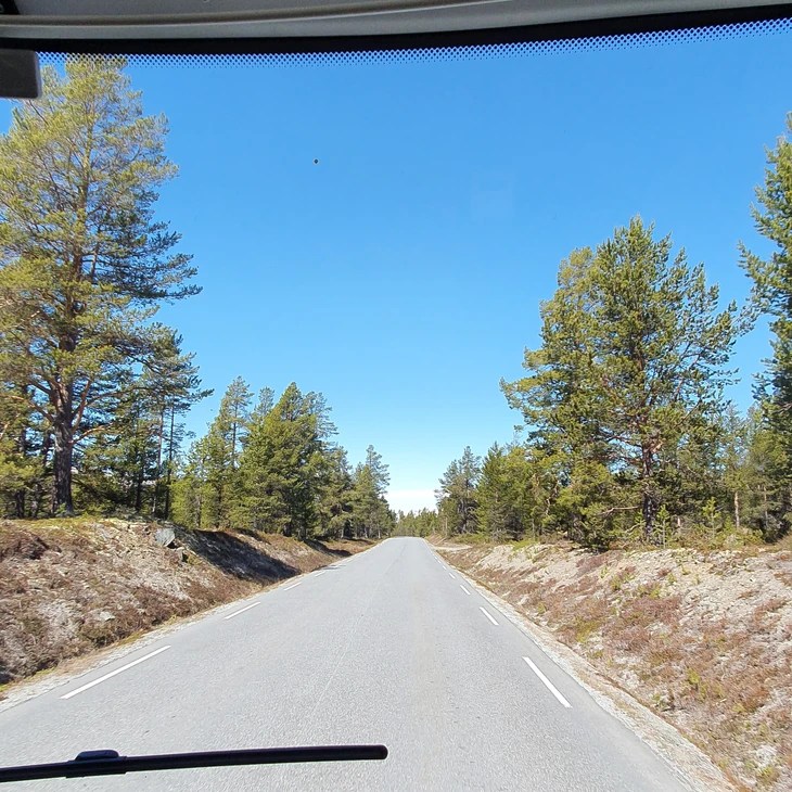 Mandag var vi tidlig klare for hjemreise. Vi kjørte Østerdalen hjem. Fortsatt i nydelig vær.