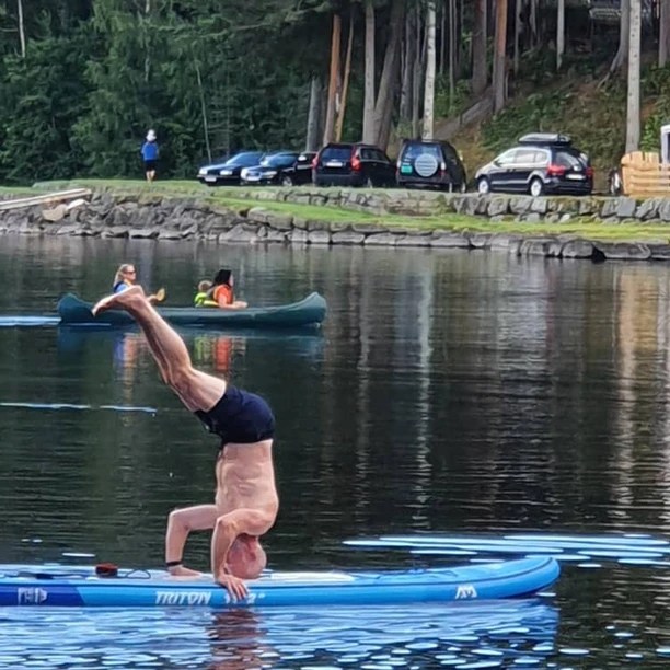 Så på denne turen ble det hodestående på SUP-brettet som skulle testes ut.