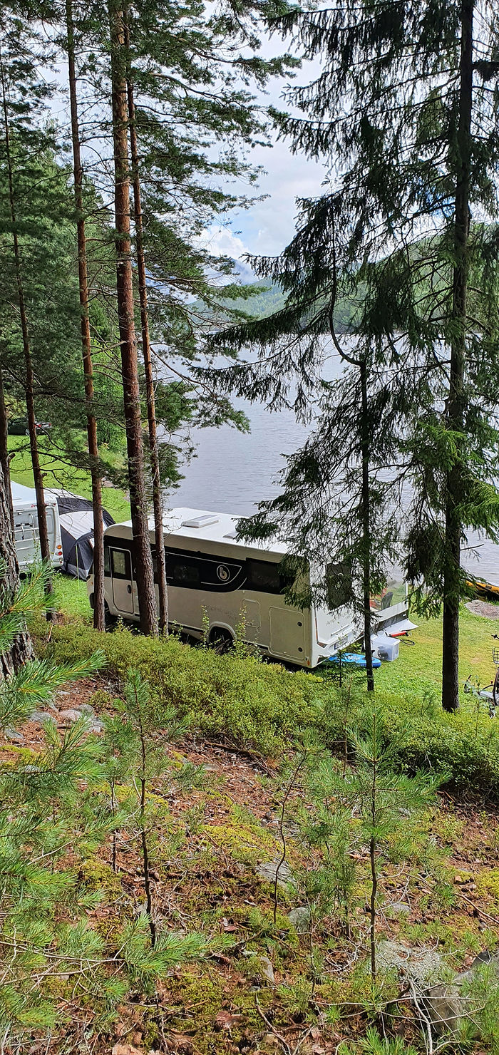 Campingen viste seg å være stappfull, virkelig stappfull. Vi har vært der veldig mange ganger og vi har aldri opplevd så mye folk, bobiler, campingvogner, telt, Camp-leter ol. Heldigvis hadde vi skikkelig flaks med at noen dro akkurat da vi kom og vi fikk de plassene vi hadde håpet på.