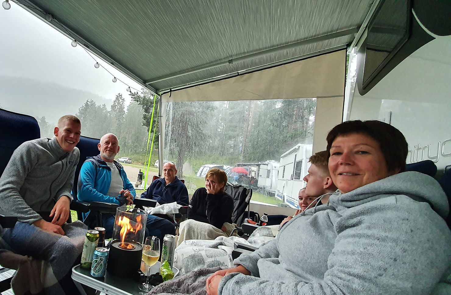 Vi og en av de andre har avansert fra Camp-let og hustelt til bobil, den tredje familien leide seg en fin campinghytte.