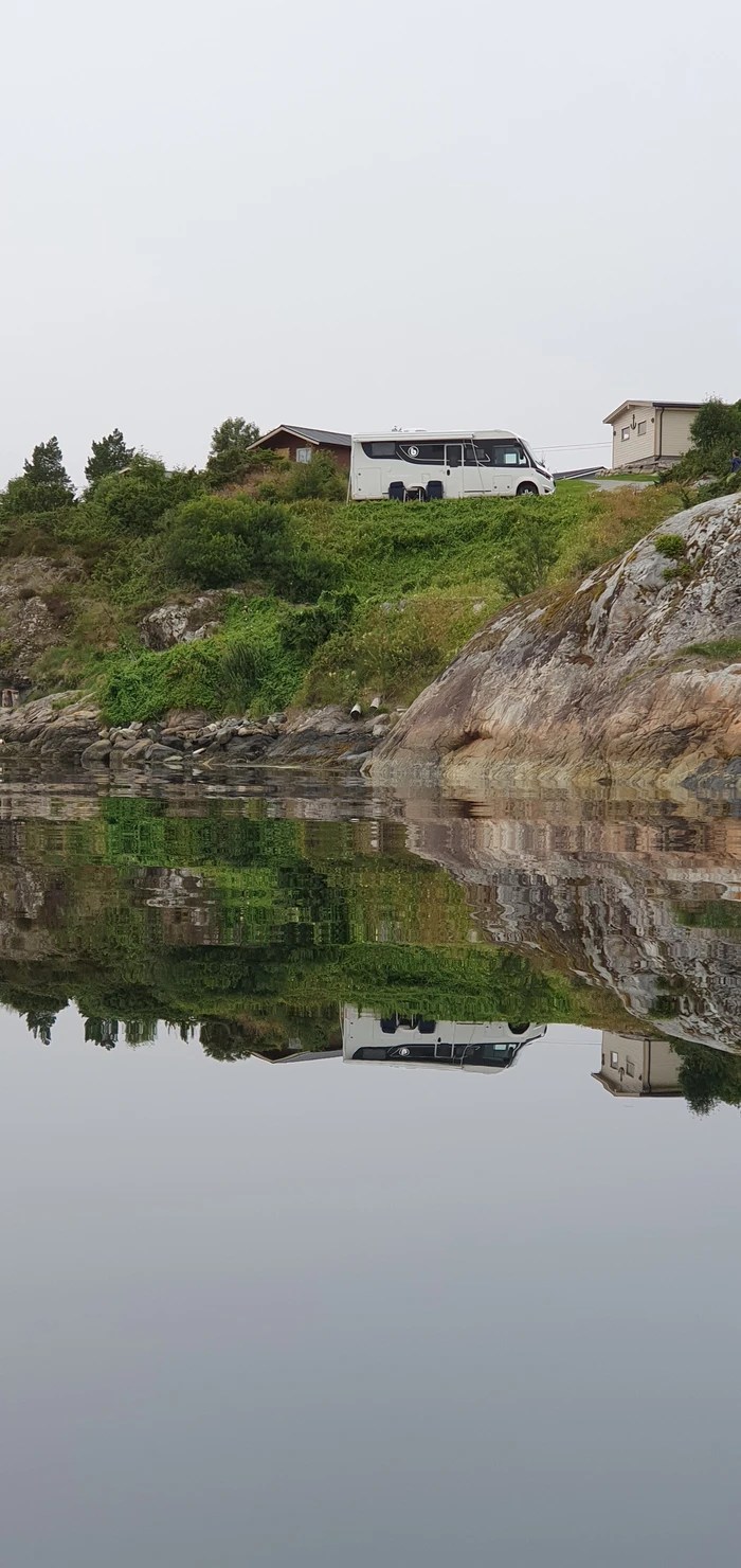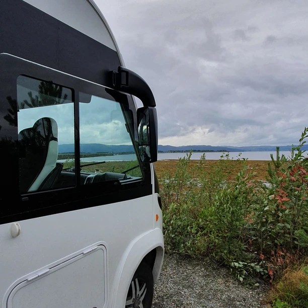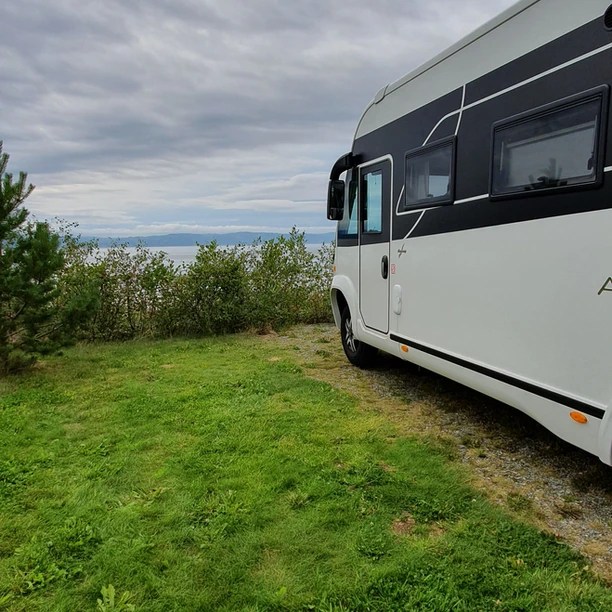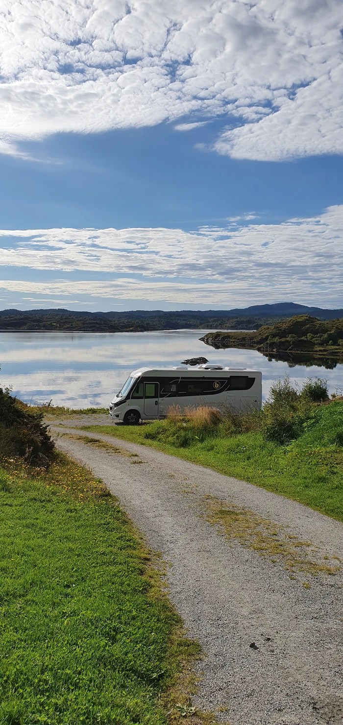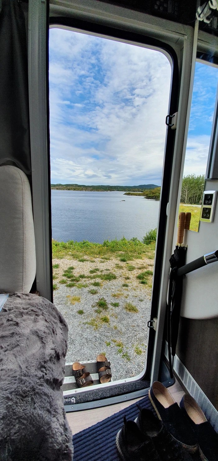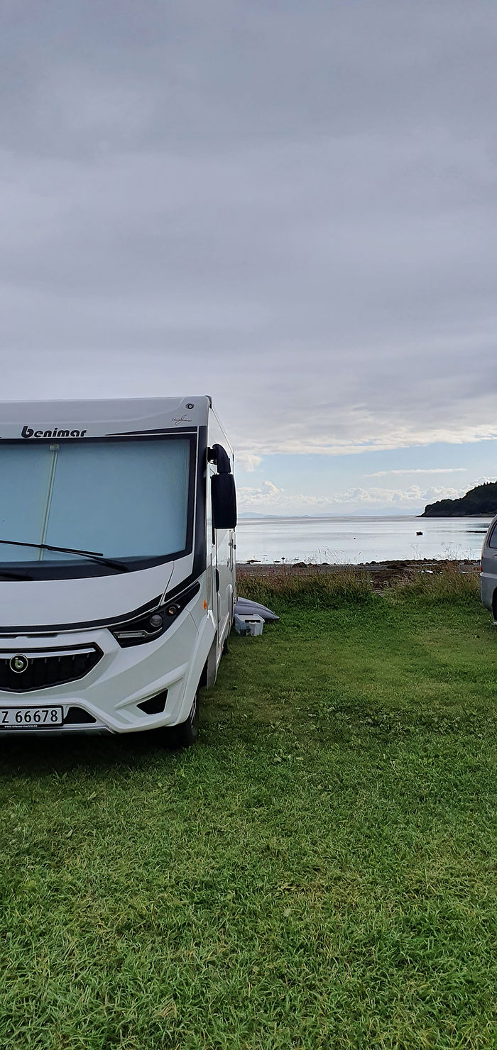 Etter noen timers kjøretur kom vi til Hitra. Vi hadde sett oss ut en bobilparkering der, men da vi kom dit likte vi ikke den spesielt godt. Så da snudde vi og kjørte tilbake til en camping vi hadde sett på veien og fikk en veldig flott plass der.