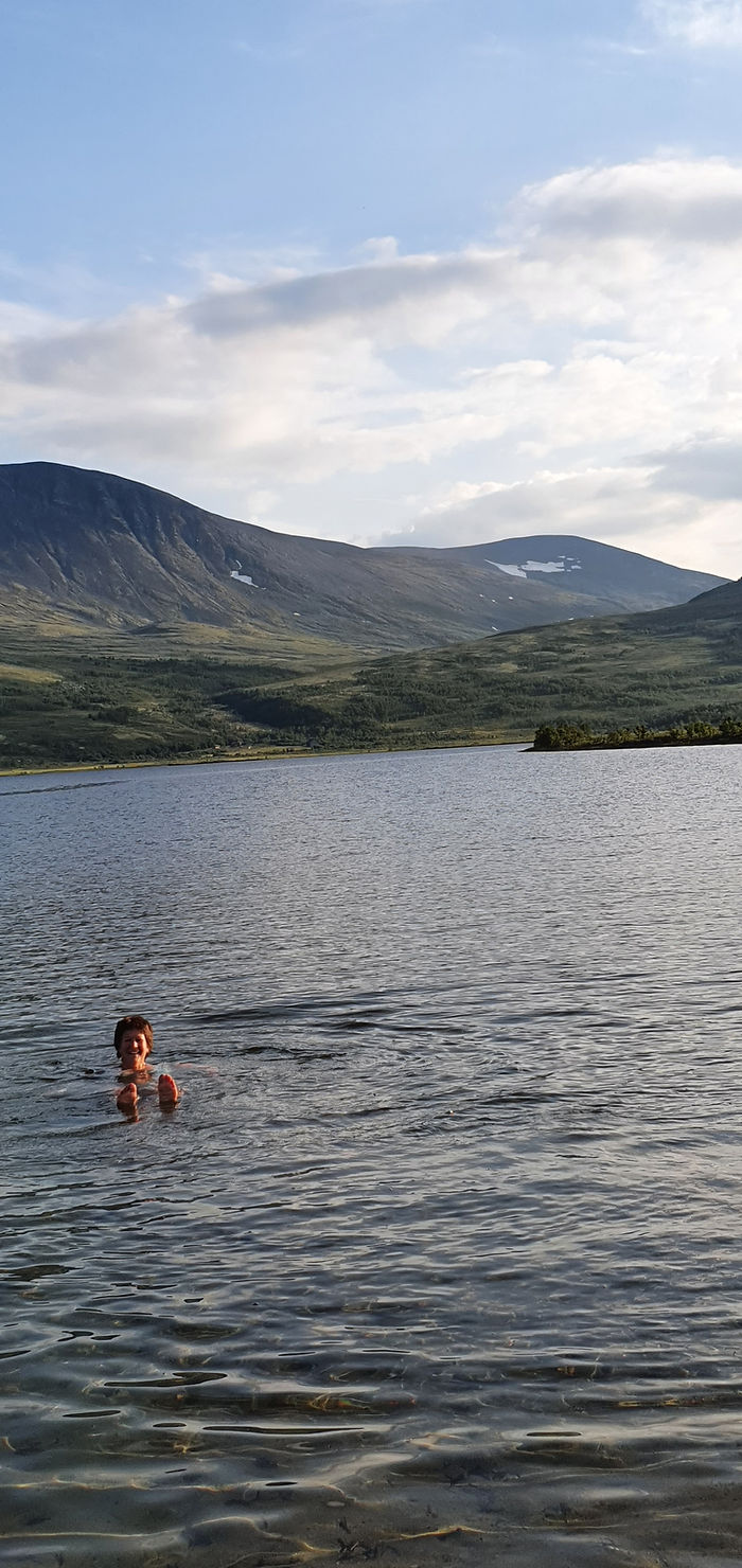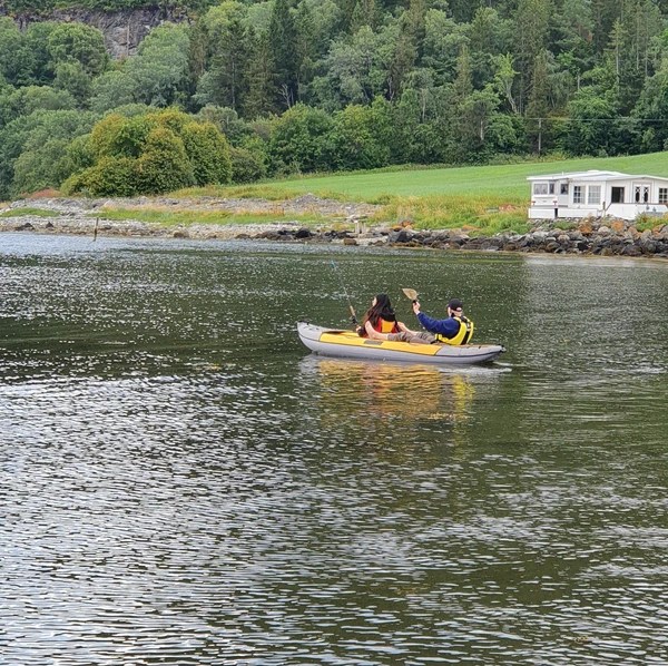 Nok en gang var vi heldige med været. Så det ble både bading og kajakktur på kvelden.