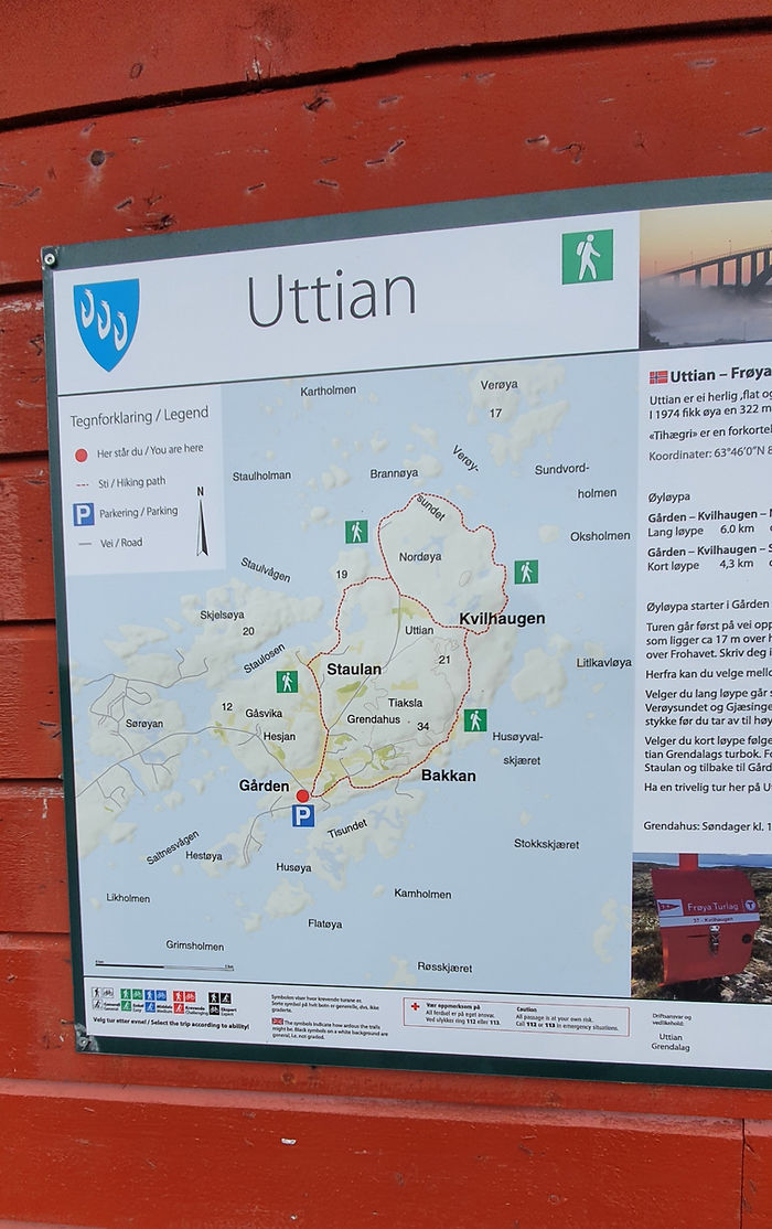 Vi spiste lunsjen vår i bobilen, før vi tok en rusletur på Uttian – Øyløypa.