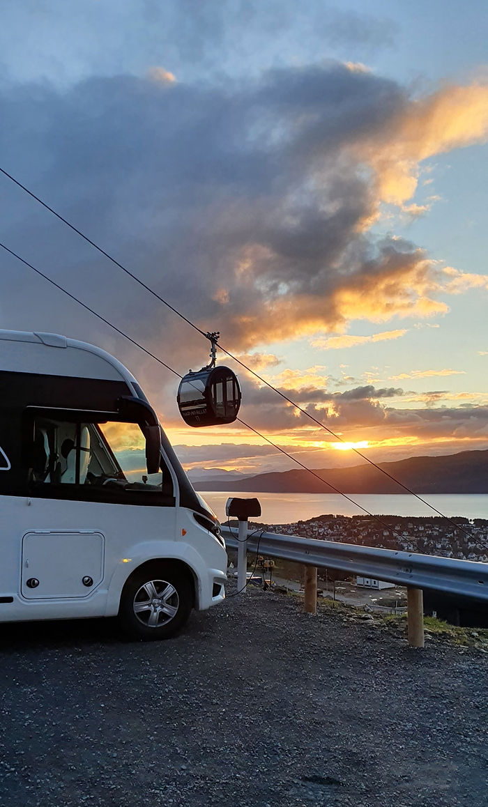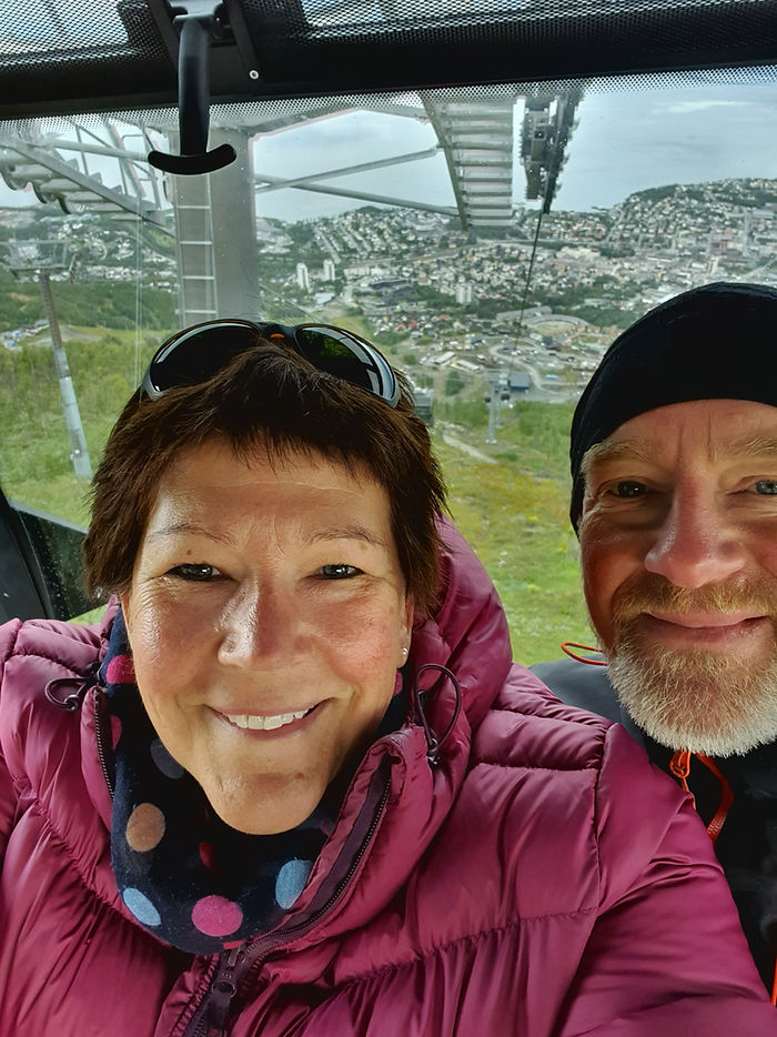 Her på denne plassen i Narvik måtte vi bare ta oss litt tid før vi skulle kjøre avgårde igjen. Vi ville ta gondolbanen til toppen, nyte utsikten og naturen der.
