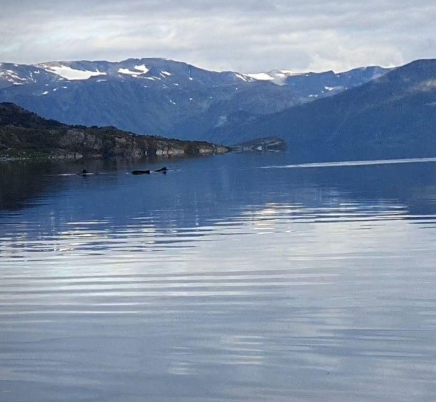 Og jammen fikk vi se niser her også. Vidar ville vi skulle padle ut til de, men…….jeg var litt skeptisk der jeg satt i en liten oppblåsbar kajakk.