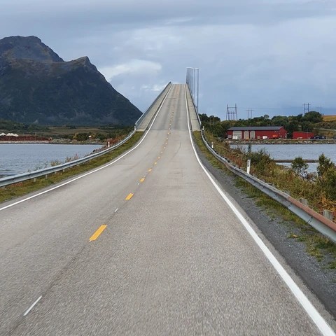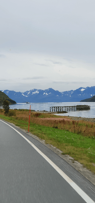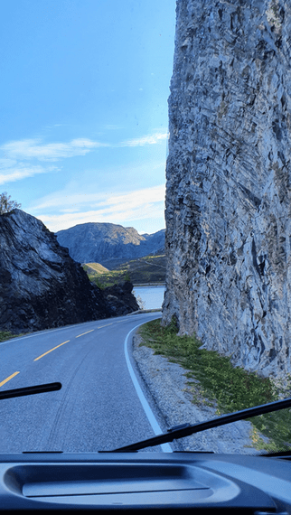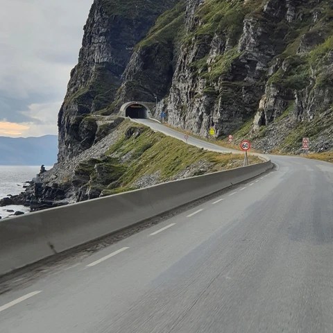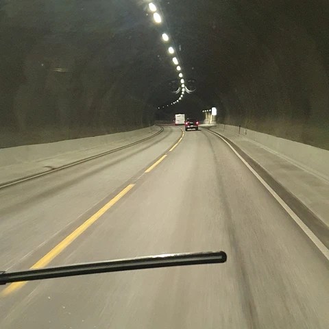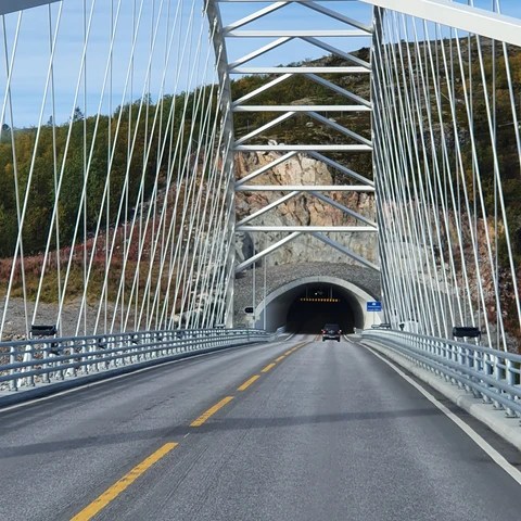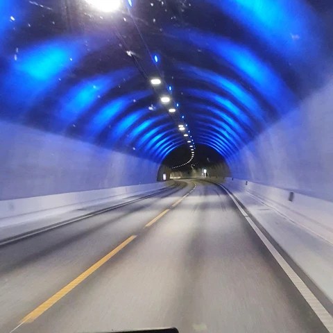 Vi kjørte i veldig mange tunneler og over mange bruer. Det er så enormt mange tunneler og bruer i dette landet. Og nordover var de overalt. Tunnelene går gjennom fjell og under fjorder. Bruene binder mange øyer og fastland sammen. Ikke minst er mange av tunnelene sikkert veldig gode å ha når vinteruværet setter inn.