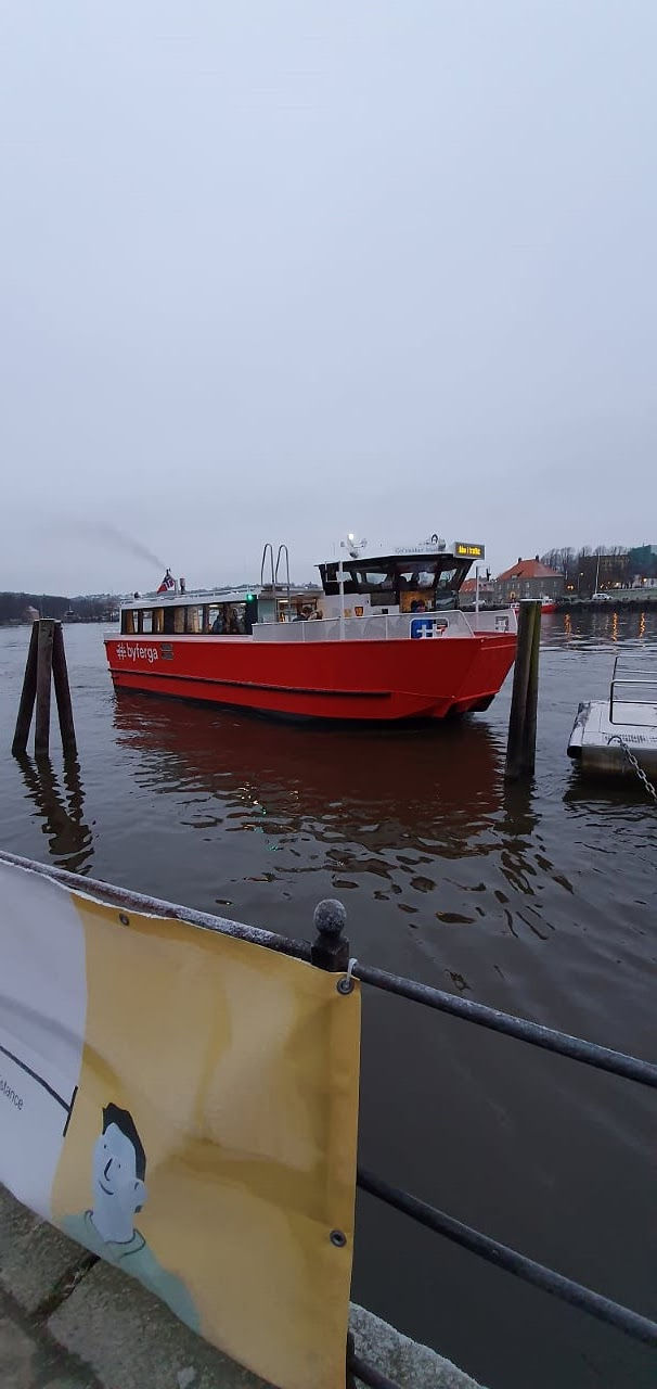 Vi hadde lyst på en tur til Gamlebyen i Fredrikstad. Jeg hadde observert en ferge som gikk frem og tilbake forbi bobilparkeringen. Et googlesøk og jeg fant ut at det var en gratis byferge som gikk rundt til mange forskjellige steder i området. Så da ruslet vi til nærmeste nærmeste fergeleie og tok ferga til Gamlebyen. Veldig praktisk og ikke minst var det en koselig fergetur.