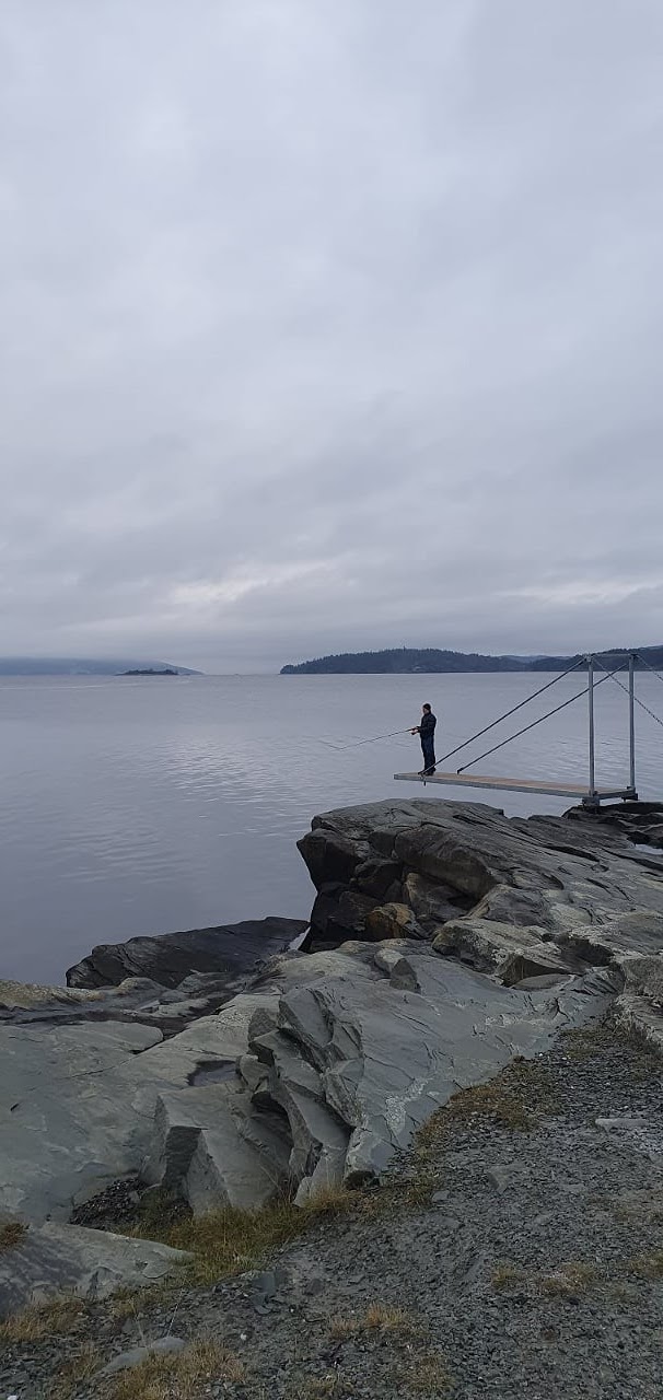 Denne helgen var også en langhelg, så søndag formiddag kjørte vi avgårde mot Jeløya i Moss. I sommer så vi oss ut en fin fricampplass, som vi nå hadde lyst til å prøve. Tror det heter Katteberget der. Været var grått og trist, men vi koset oss ute i flere timer. Vidar fikk fisket litt også.