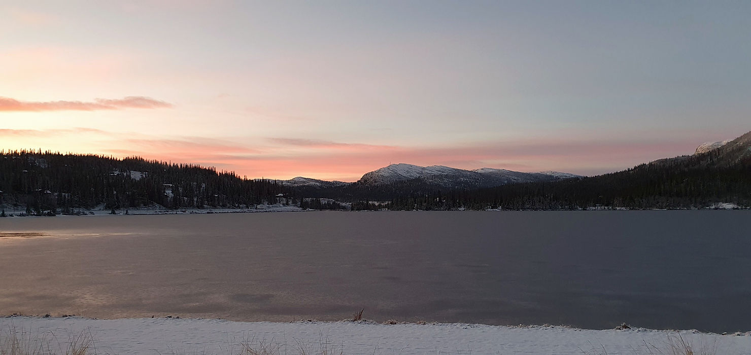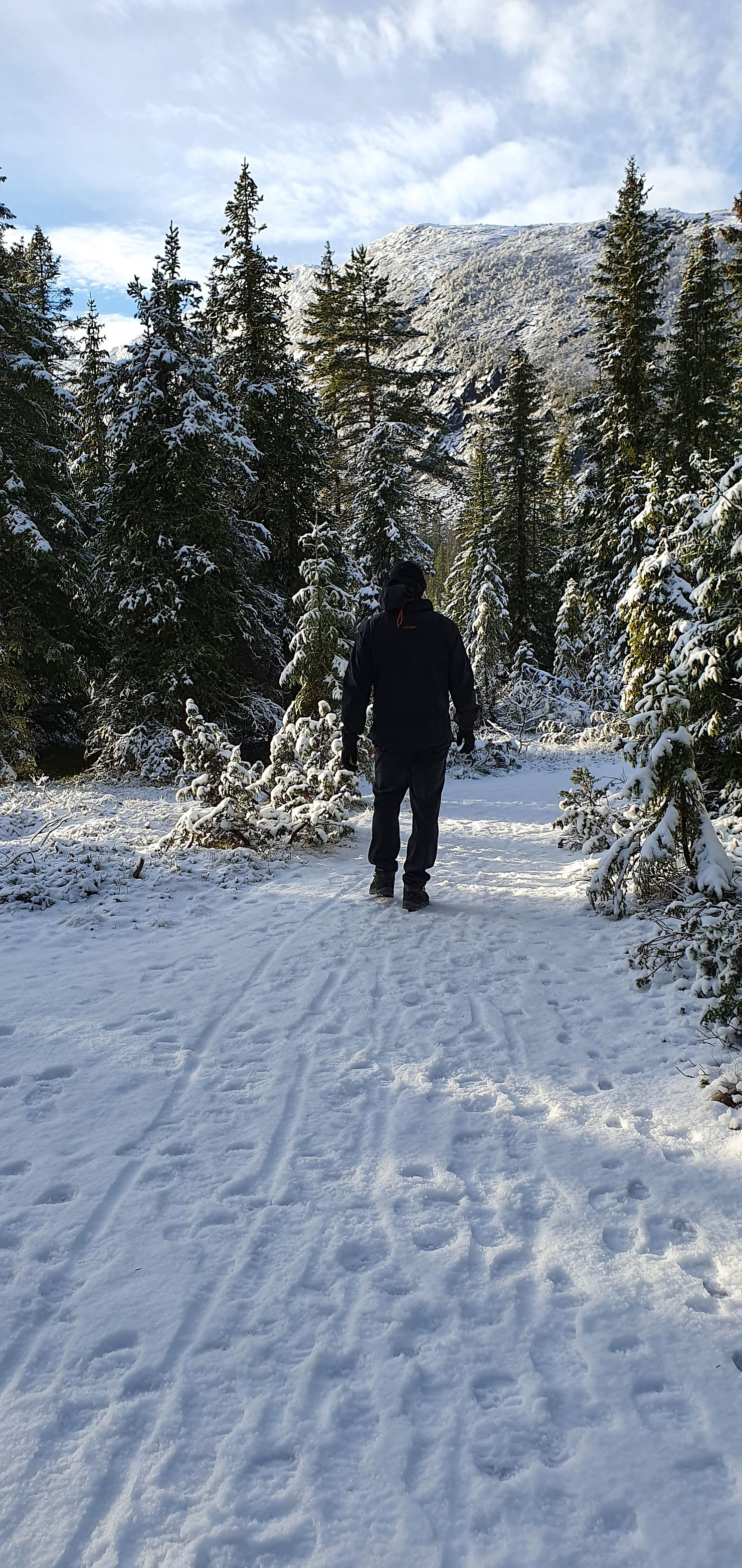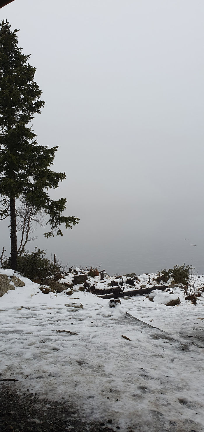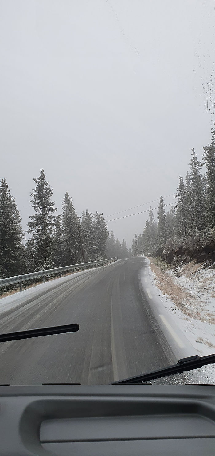 Vi kjørte fra trist vått vær hjemme, til noe som liknet litt mer på vinter.