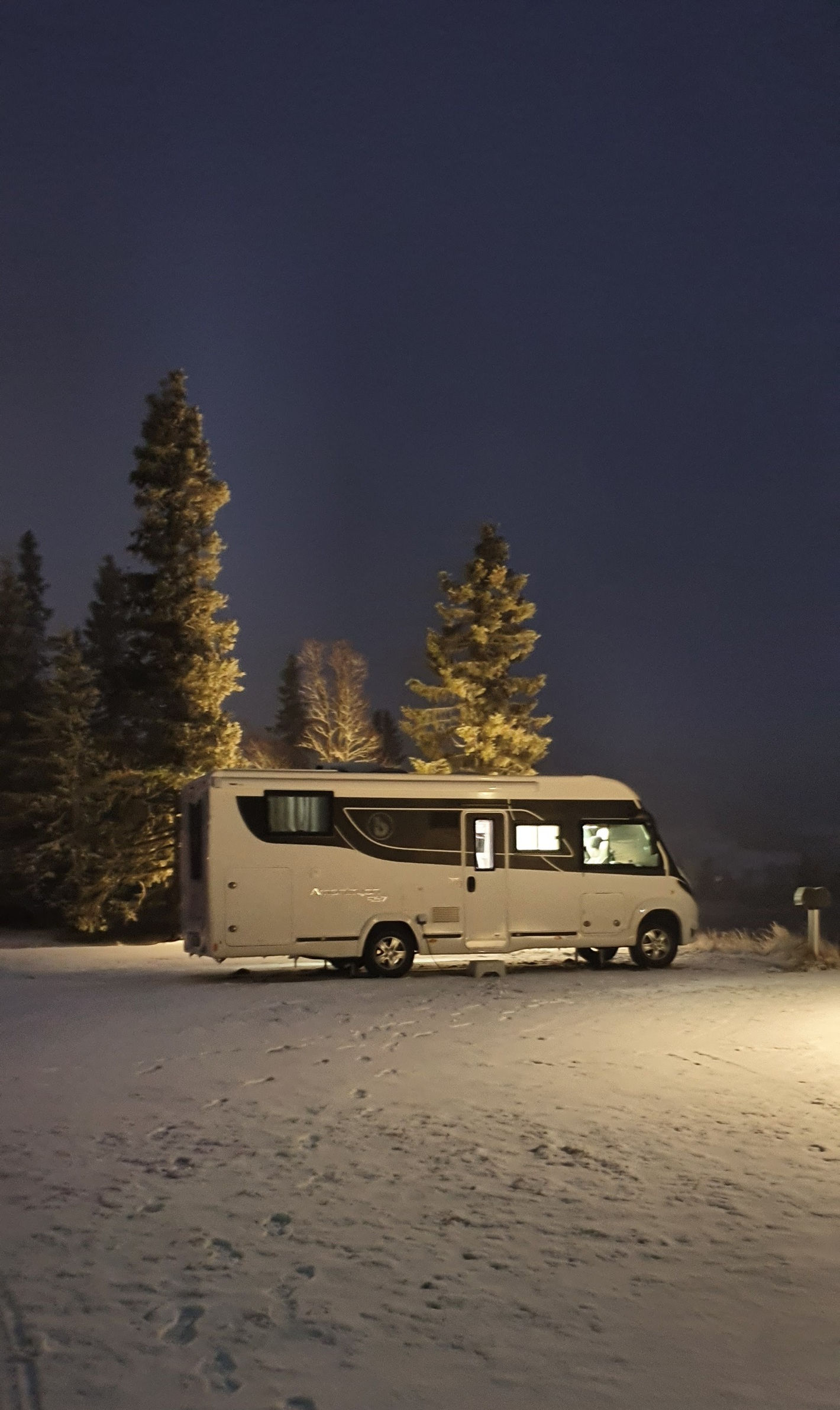 Etter hele dagen ute var det deilig å komme inn i en god og varm bobil.
