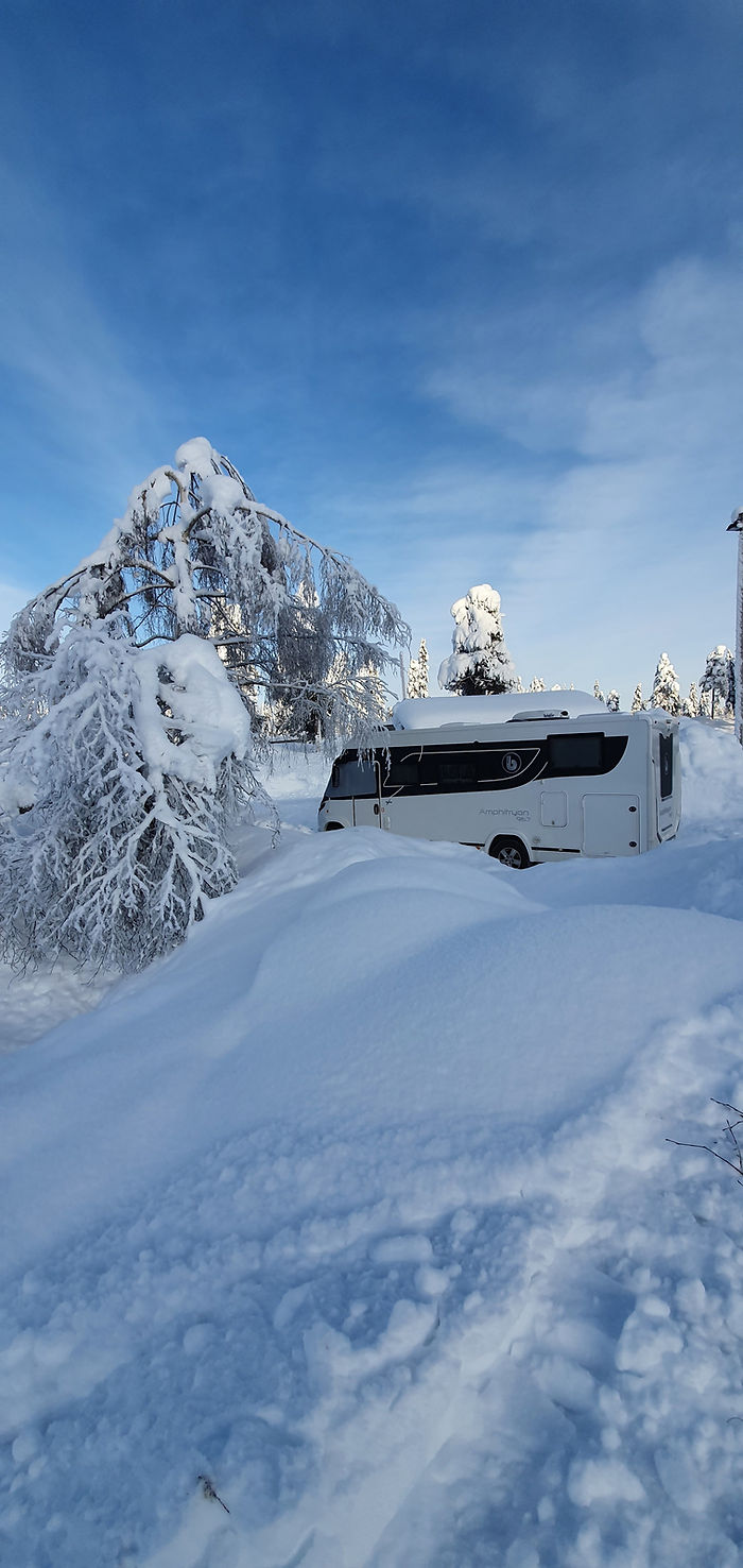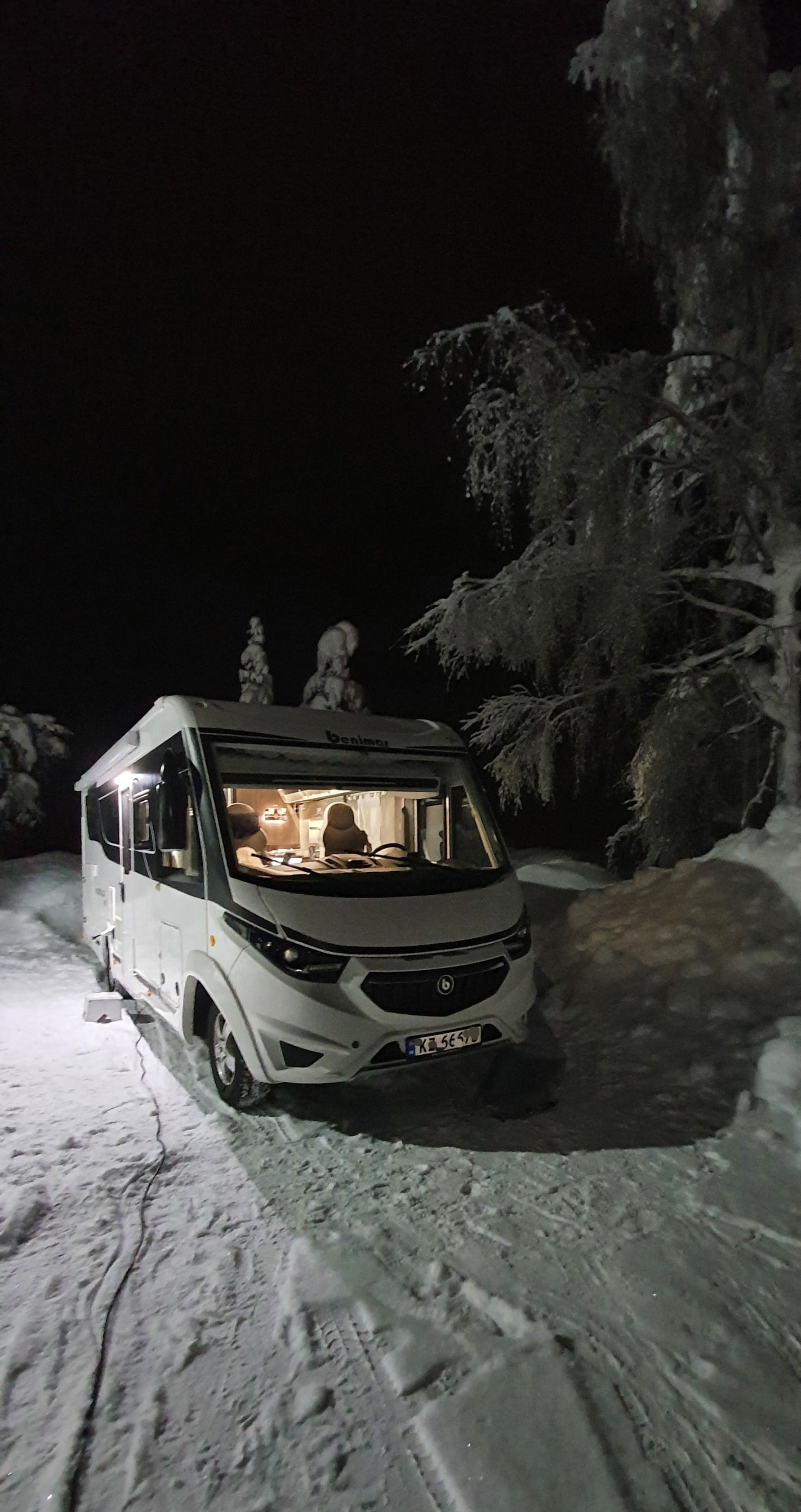 Jeg (Lisbeth) synes det å kjøre med bobil på vinterføre er litt skummelt, spesielt når jeg ikke vet hva slags føre jeg møter og veistandarden. Blir litt stresset av om vi f.eks. kommer til å stå fast eller skli av veien. Og bobilen er et stort kjøretøy som lett kan være til hinder for andre eller er vanskelig å få opp av en grøft hvis vi kjører av veien. Du kan lese om en tur vi hadde til Trondheim på vinterføre her, og lese hvordan jeg taklet det.