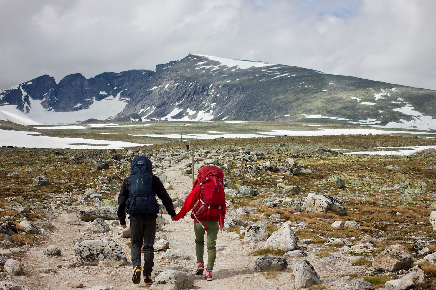 Ganske raskt etter Lars og Sophia hadde kommet lørdag formiddag dro de tre avgårde med skyttelbussen inn til Snøheim. De skulle gå opp og ned Snøhetta på lørdagen og overnatte i telt natt til søndag.