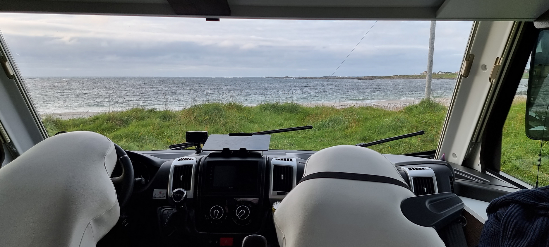 Vi bestemte oss først for en liten kjøretur på yttersiden av Lofoten og se litt der, og hvis vi fant en fin plass skulle vi bli der ett døgn eller to. Det endte med å bli bare en kjøretur. Det var vanskelig å finne en fin plass til bobilen for natten. Det var veldig mye turister i Lofoten da vi var der og det virket som om det var bobiler i alle fasonger og varianter, biler, telt og folk overalt.