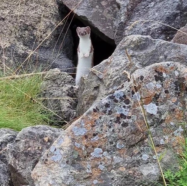 Og jeg fikk besøk av en røyskatt mens jeg satt der ved vannet.