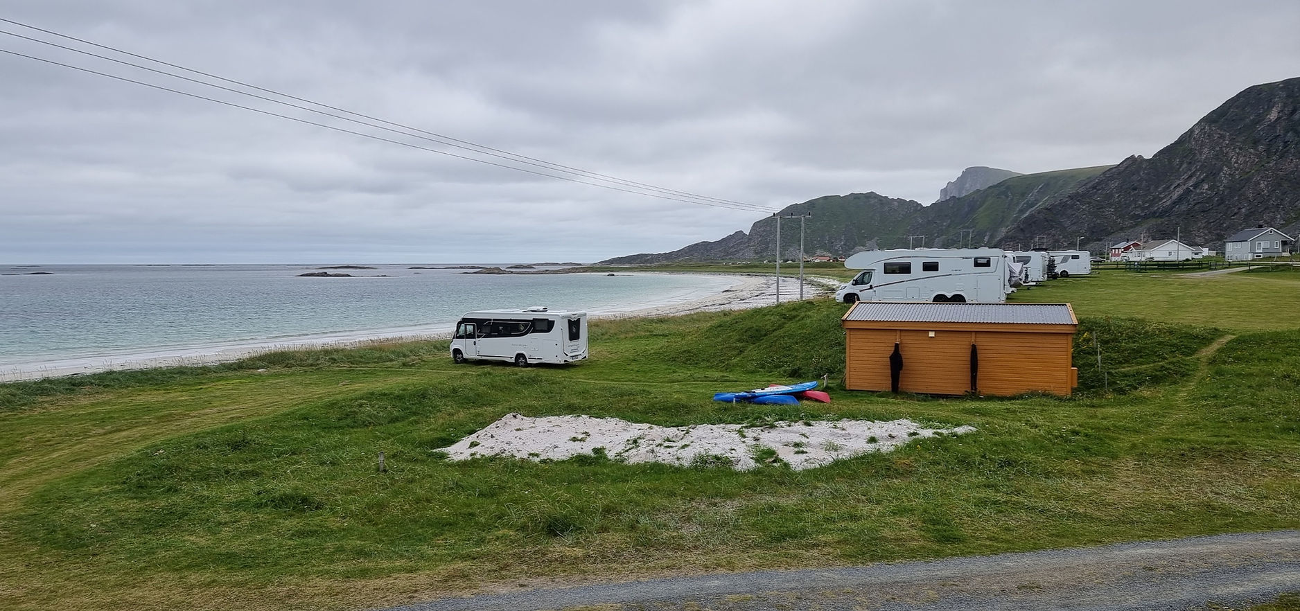 Men, siden vi da først var på Sortland tenkte vi at vi like gjerne kunne finne en plass å overnatte der. Vi googlet litt og fant en fin fricampplass en liten kjøretur unna.