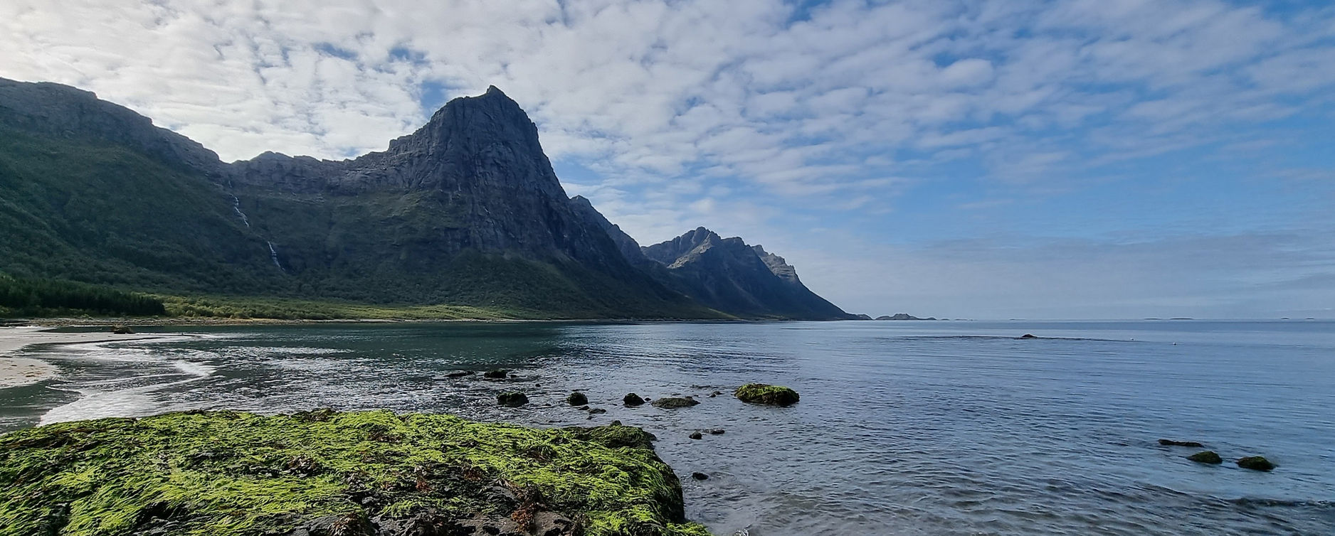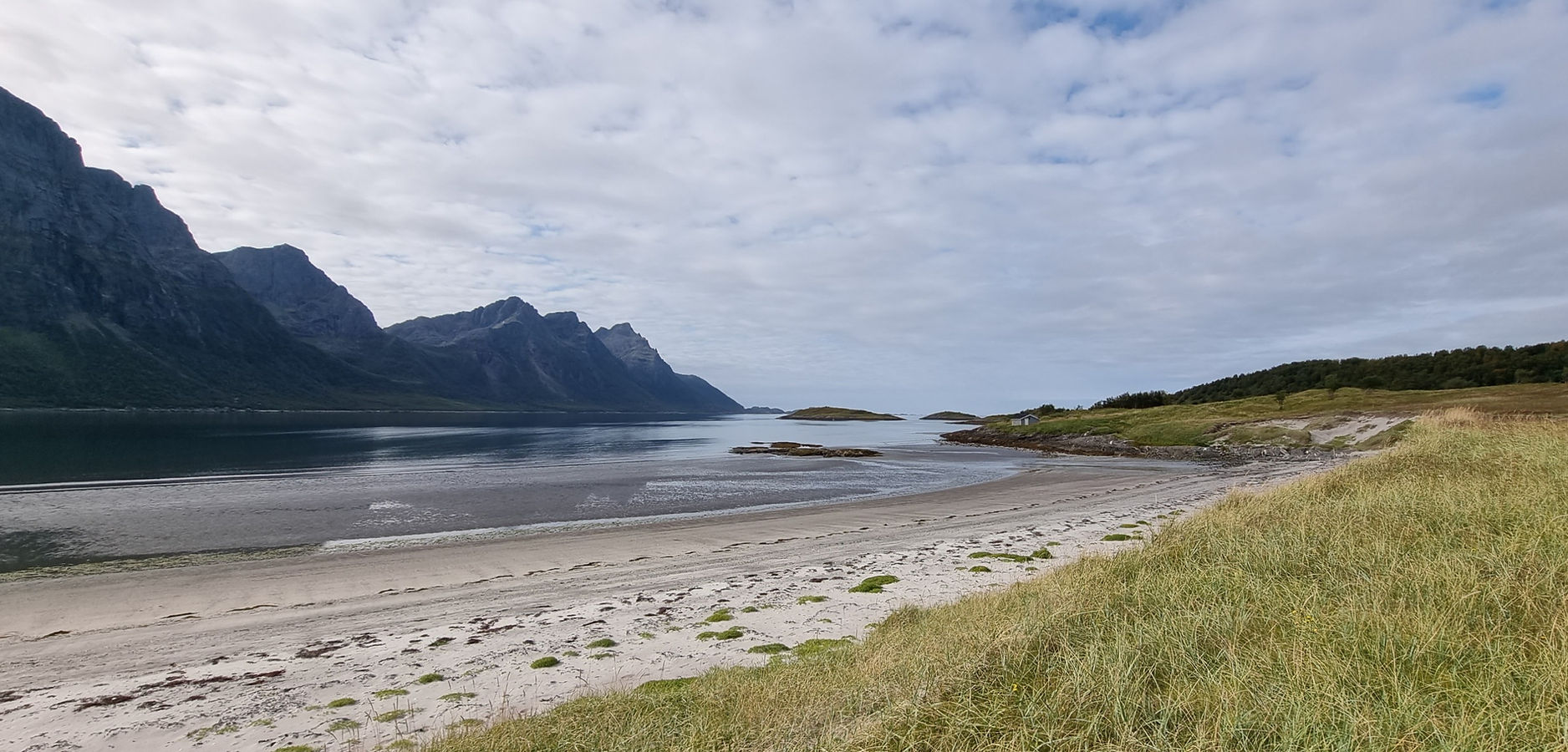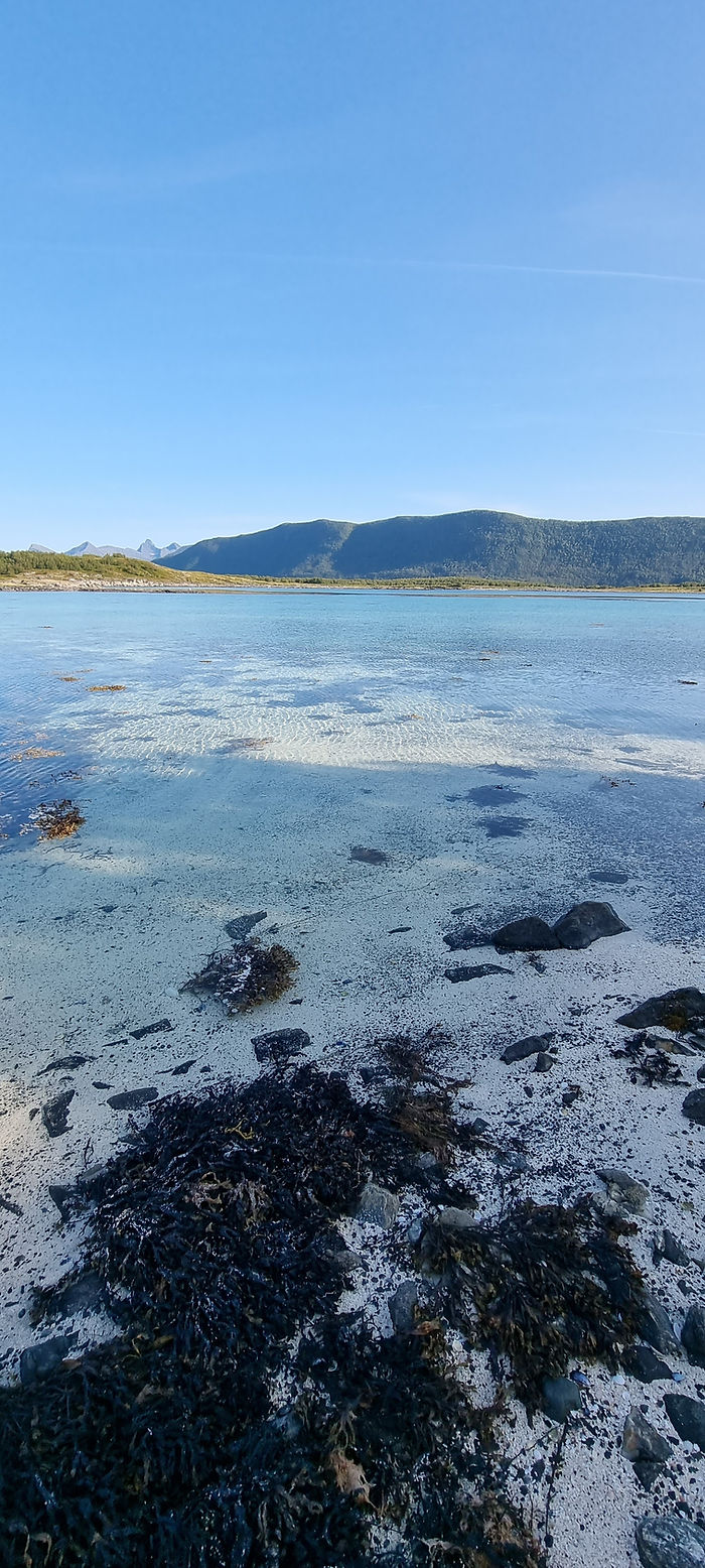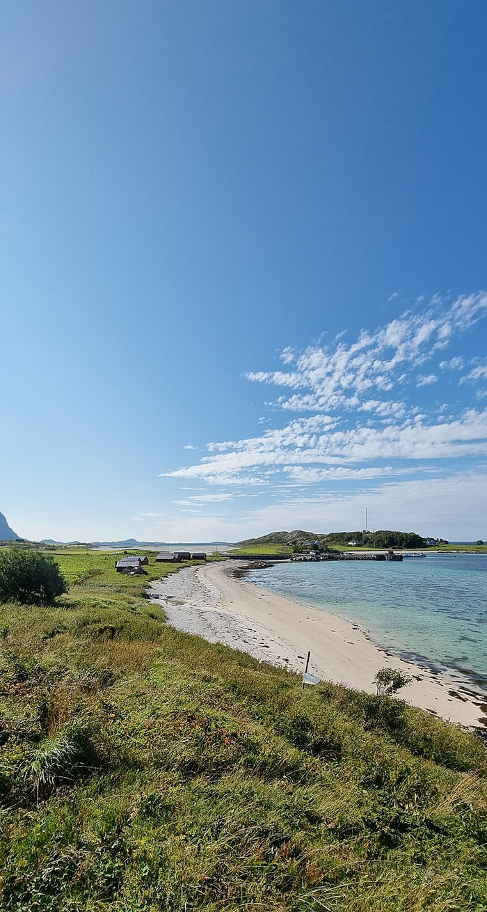 Etter to nydelige døgn ville vi se mer av Steigen. Vi bare kjørte av gårde og så hvor veien førte oss. Det kom et skilt mot Holkestad og dit kjørte vi. Nok en gang kom vi til en liten perle. Vi ble der i flere timer og bare koset oss med lunsj, gåtur på en del av Dronningruta som er der, koset oss på stranden og bare tok livet fullstendig med ro.