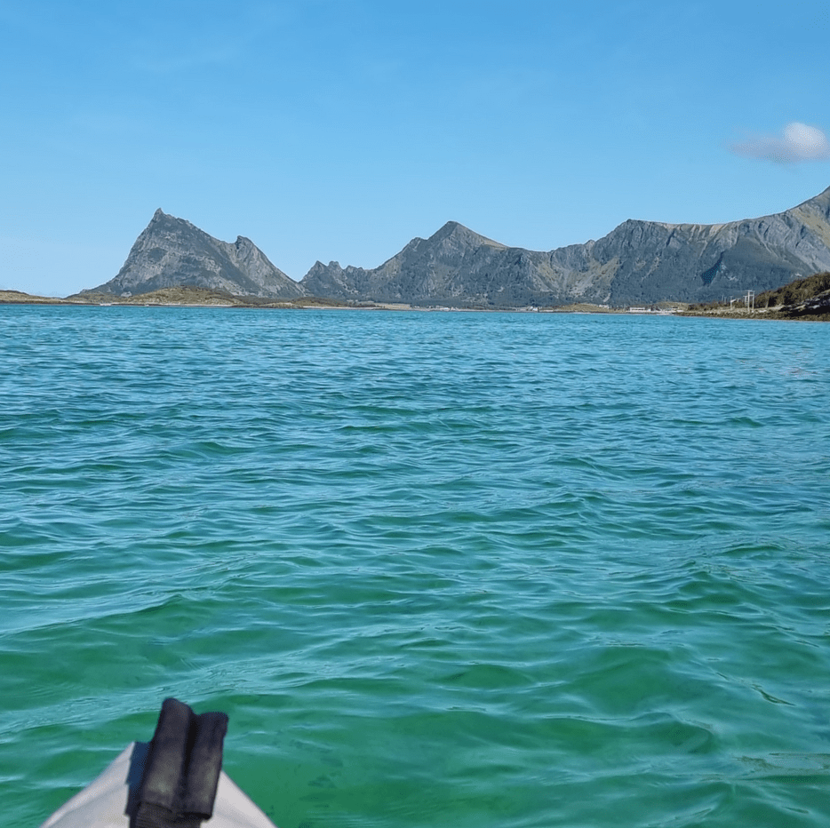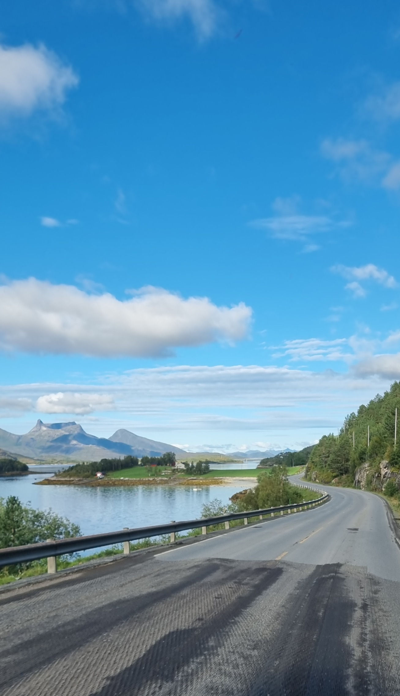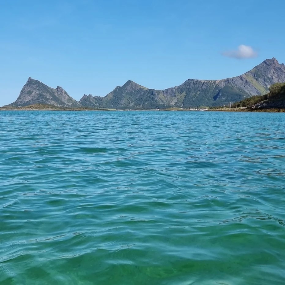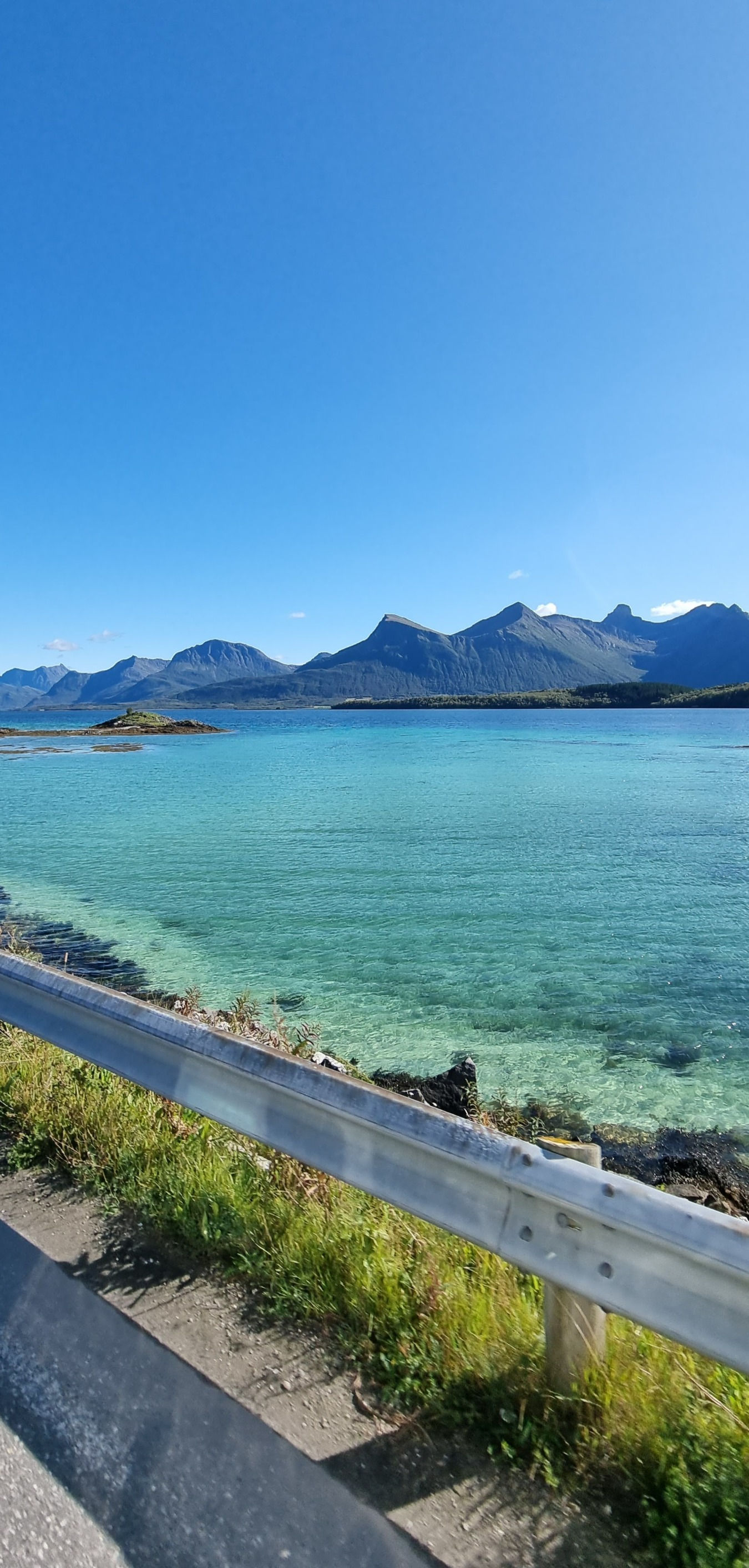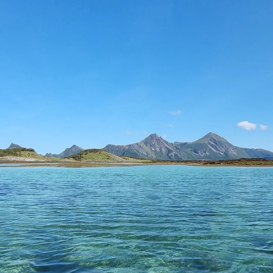 Å kjøre ut av Steigentunnelen og ut mot Engeløya var så vakkert. Strålende sol, det vakre turkise vannet og fjellene. Alt vi kunne drømme om når vi først skulle dra dit.