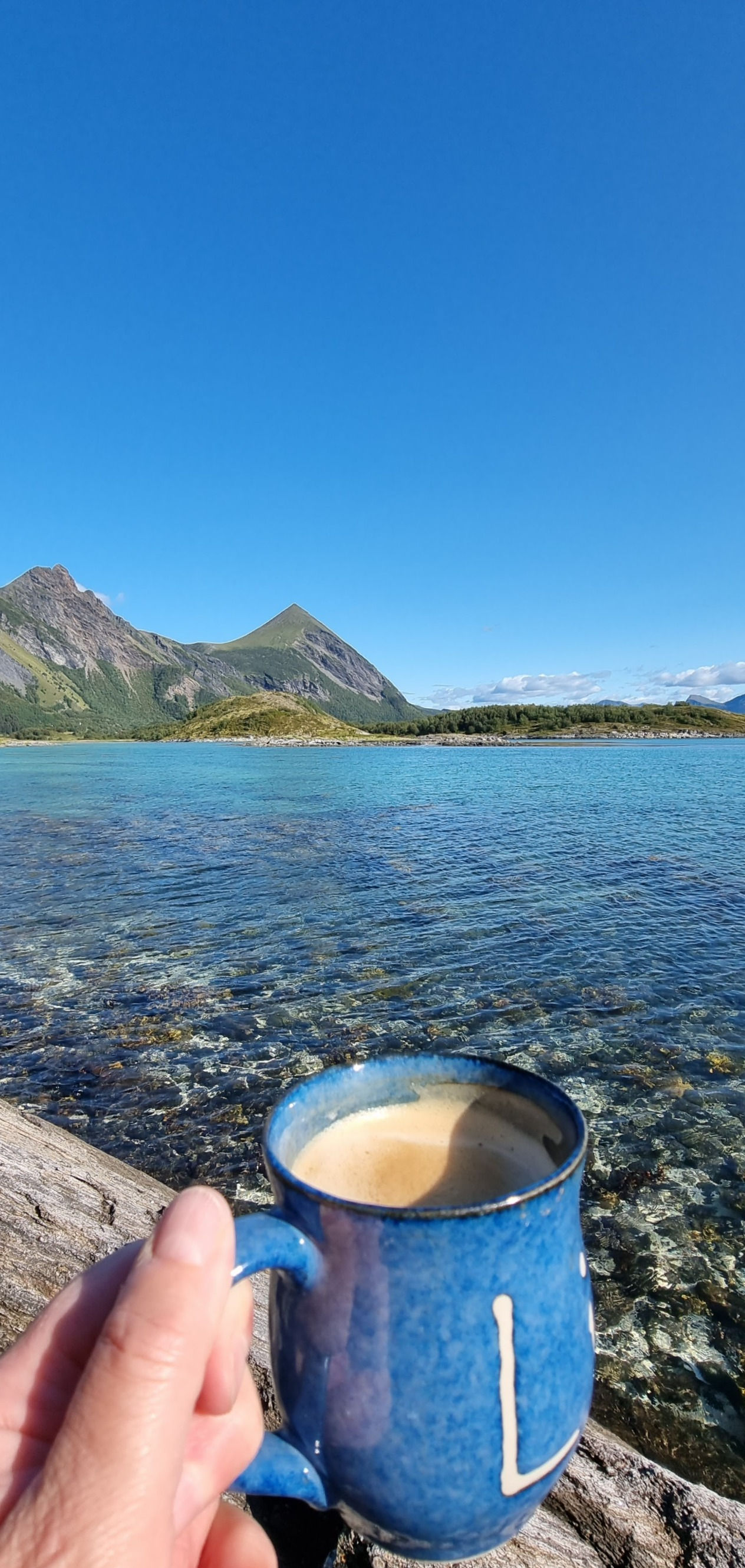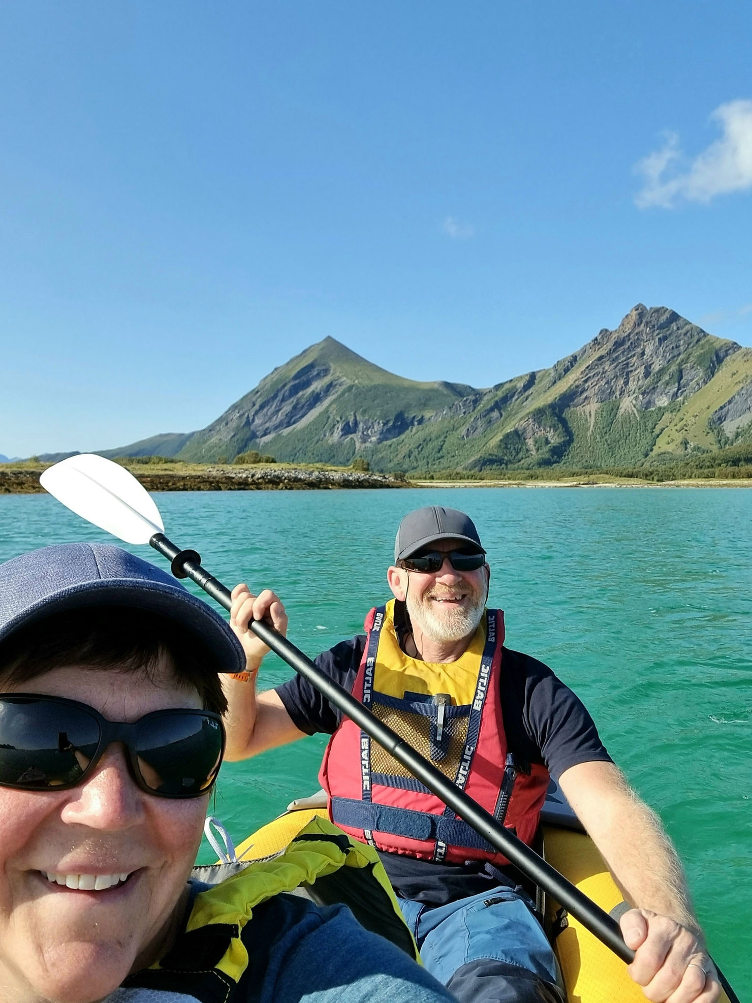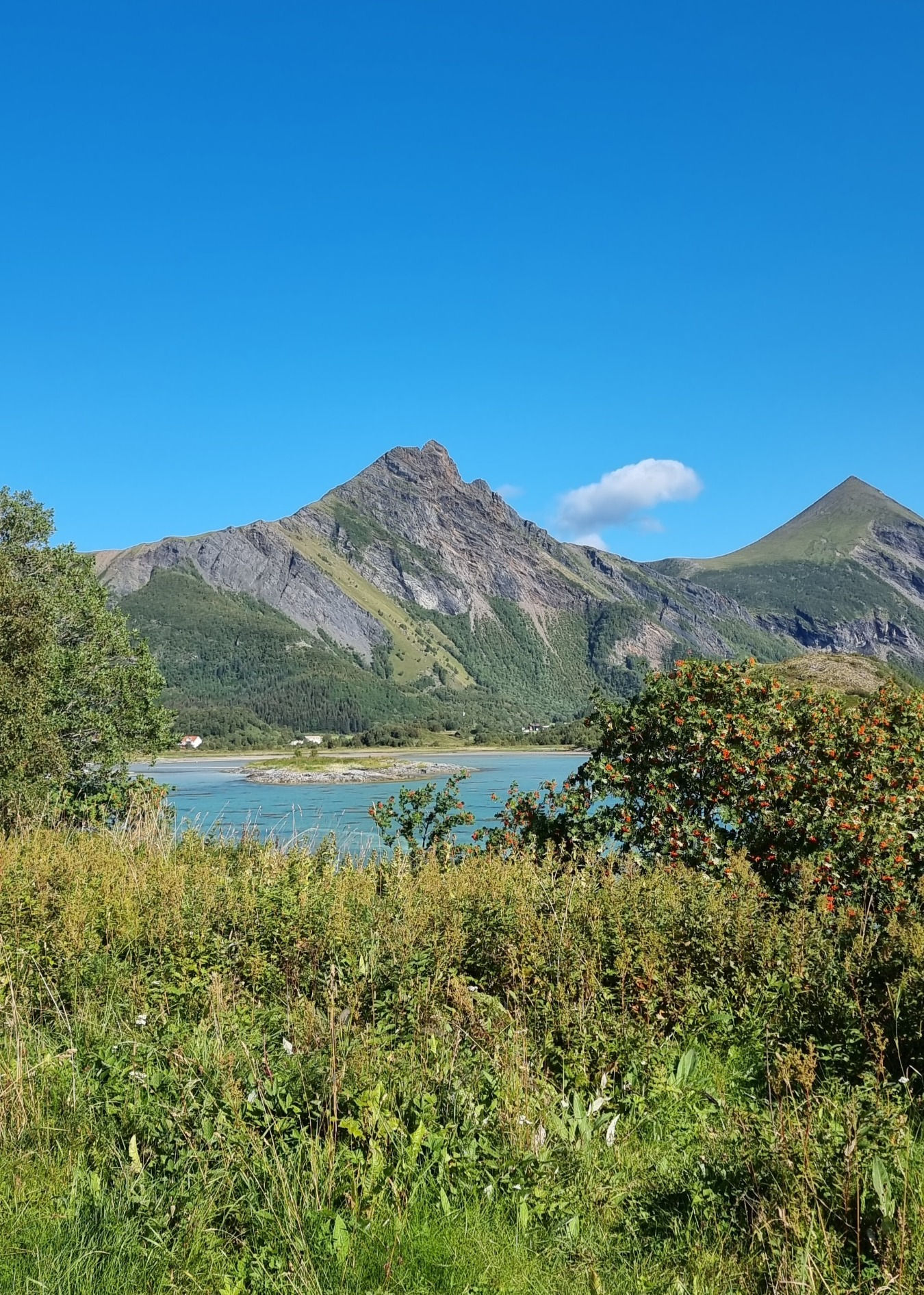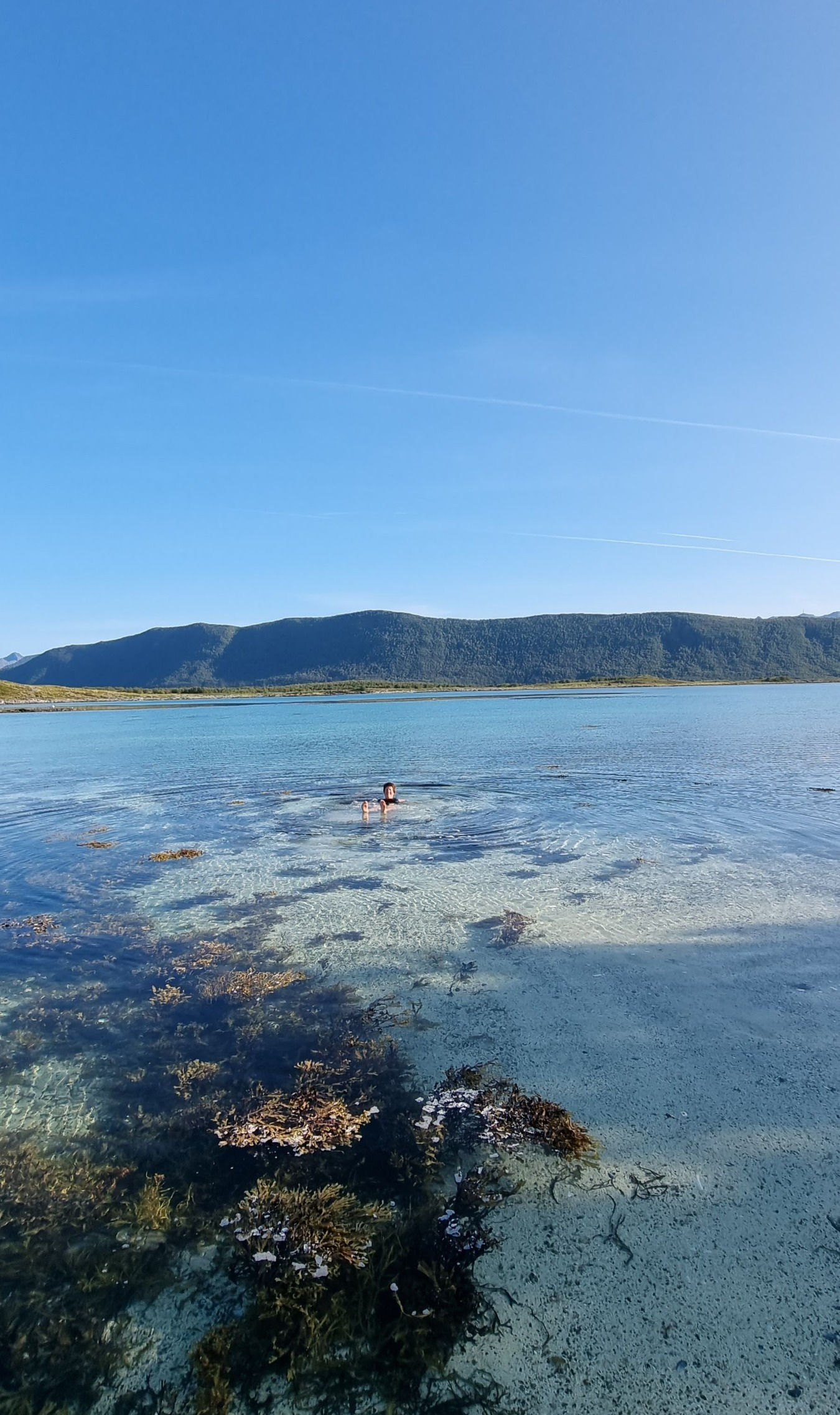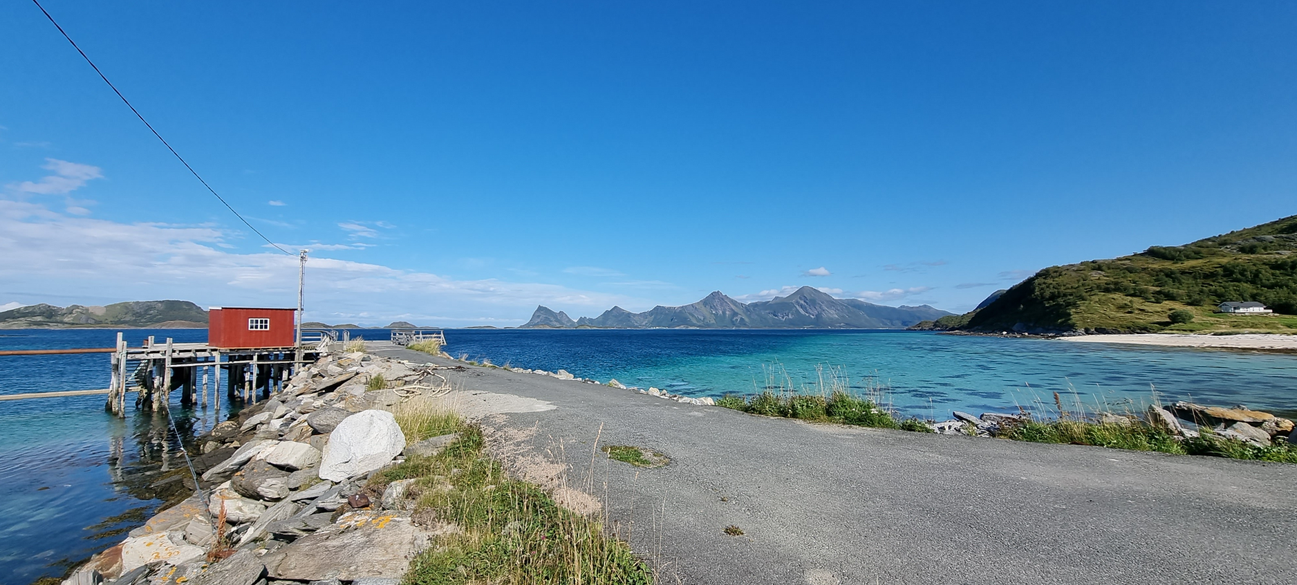Å kjøre ut av Steigentunnelen og ut mot Engeløya var så vakkert. Strålende sol, det vakre turkise vannet og fjellene. Alt vi kunne drømme om når vi først skulle dra dit.
