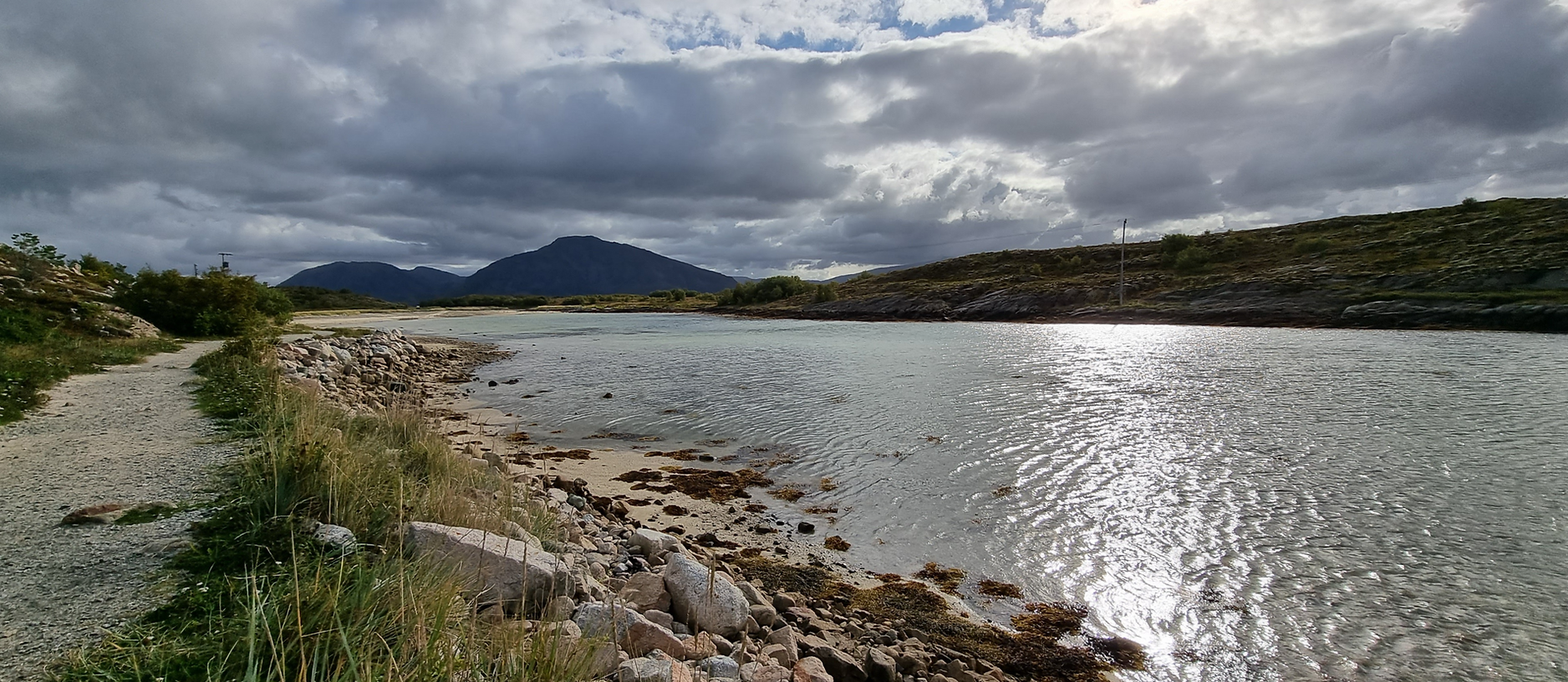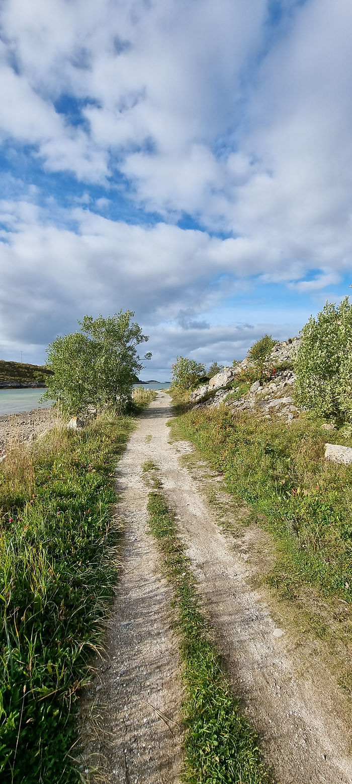 Fra campingen var det fine stier langs strandkanten rundt Torghatten.