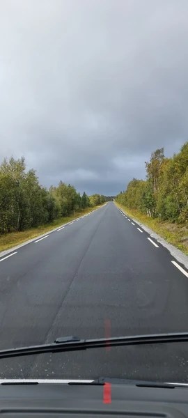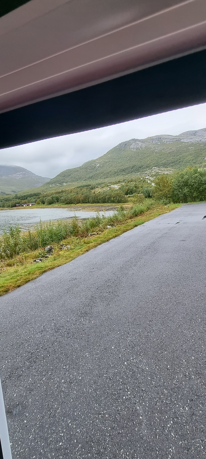 Det var vanskelig å finne en overnattingsplass i mørket, men vi fant omsider en asfaltplass. Det var helt mørkt så omgivelsene kunne vi ikke se. Dagen etter våknet og fikk se en ganske så grei utsikt fra senga.