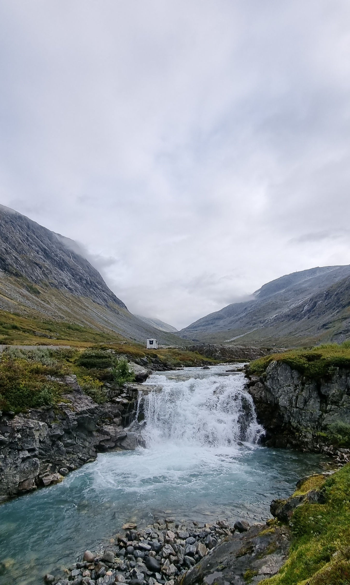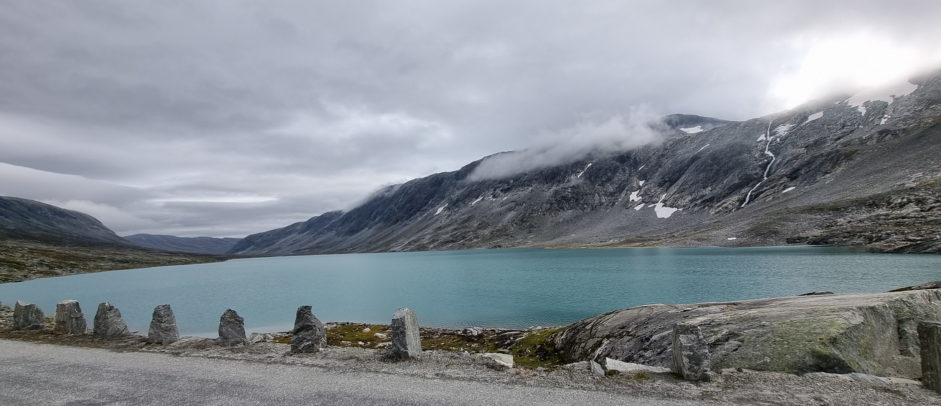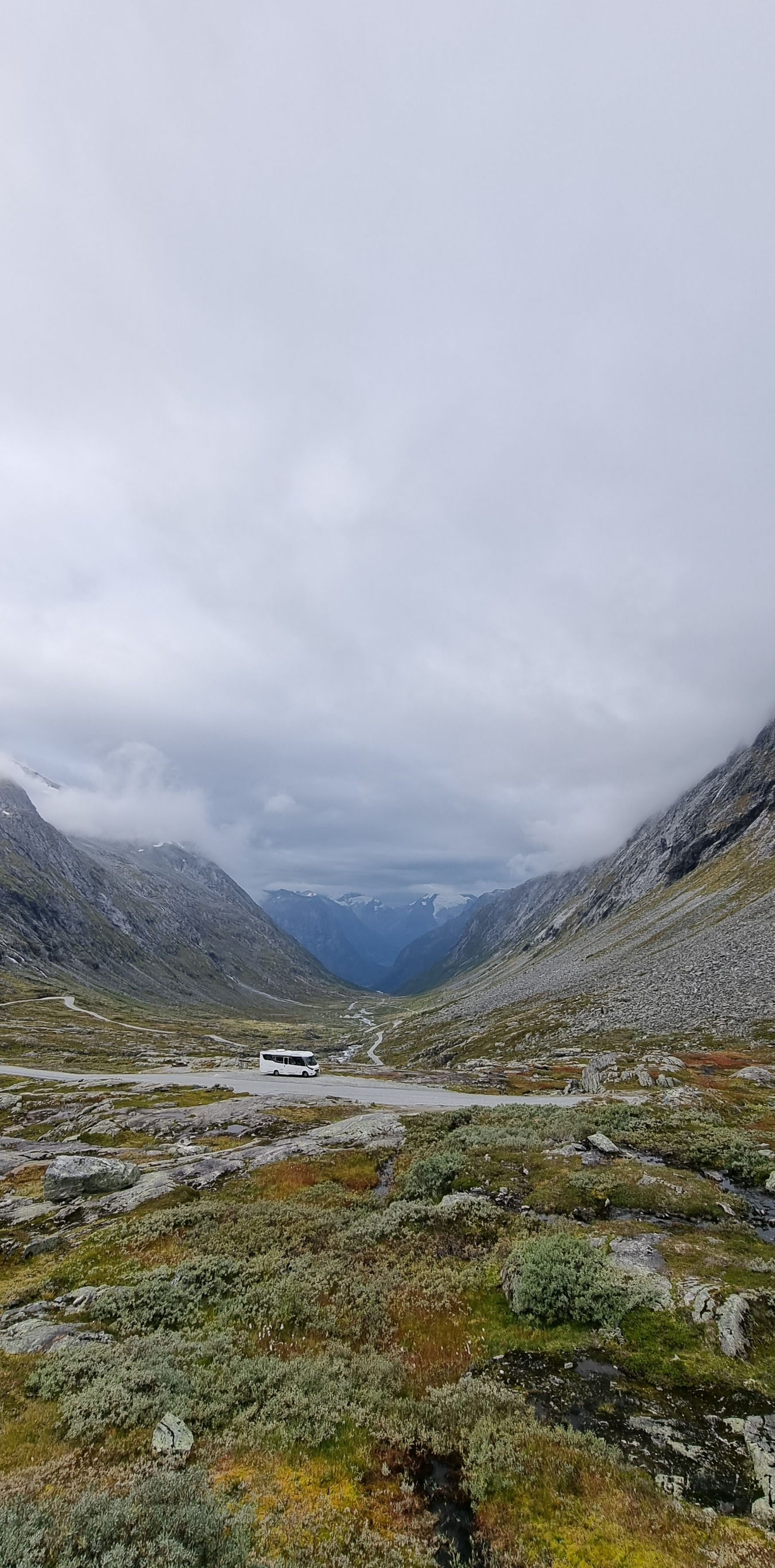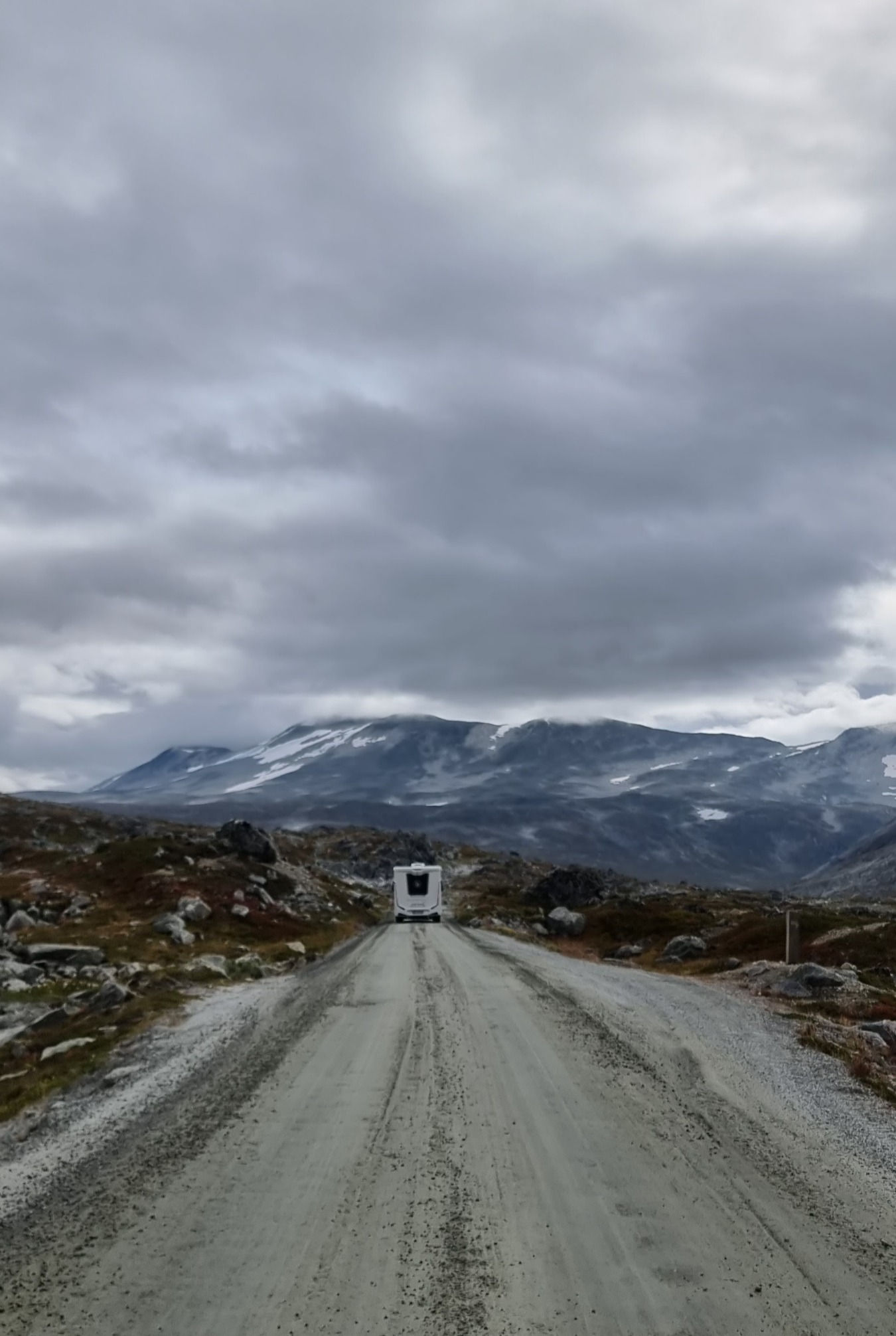 Vi kjørte veien i retning Grotli. Veien starter ganske svingete oppover før den kommer opp på fjellet.