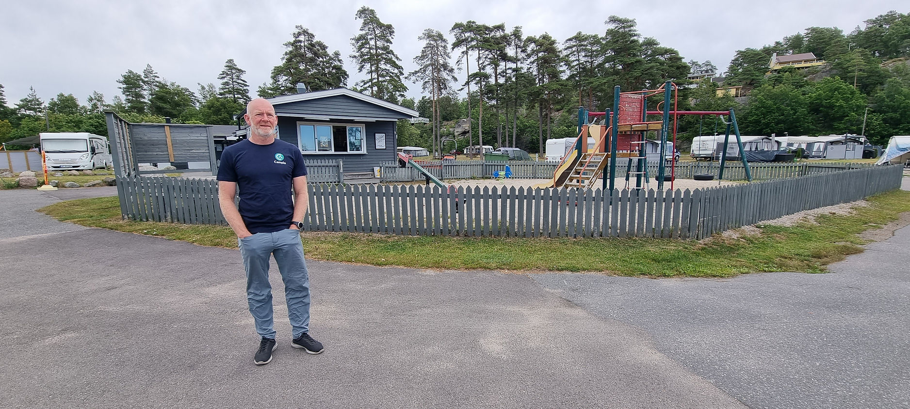 På campingen var det hytteutleie, fastplasser og døgnplasser til telt, campingvogn og bobil.