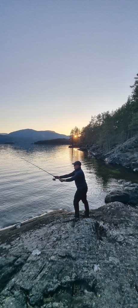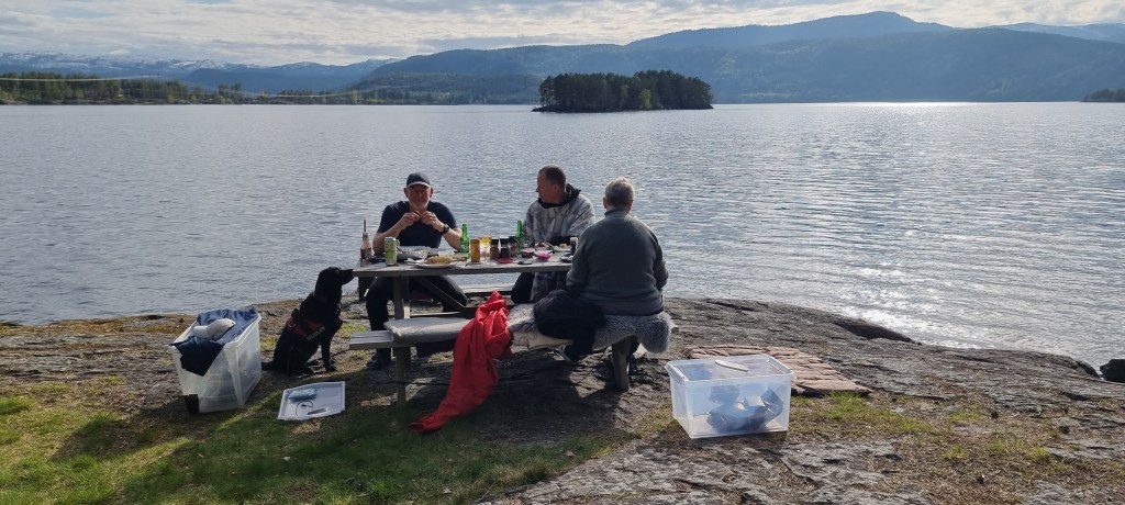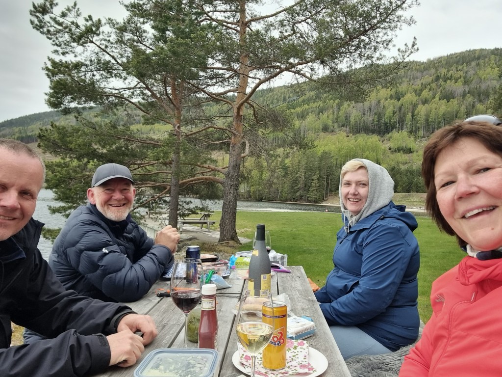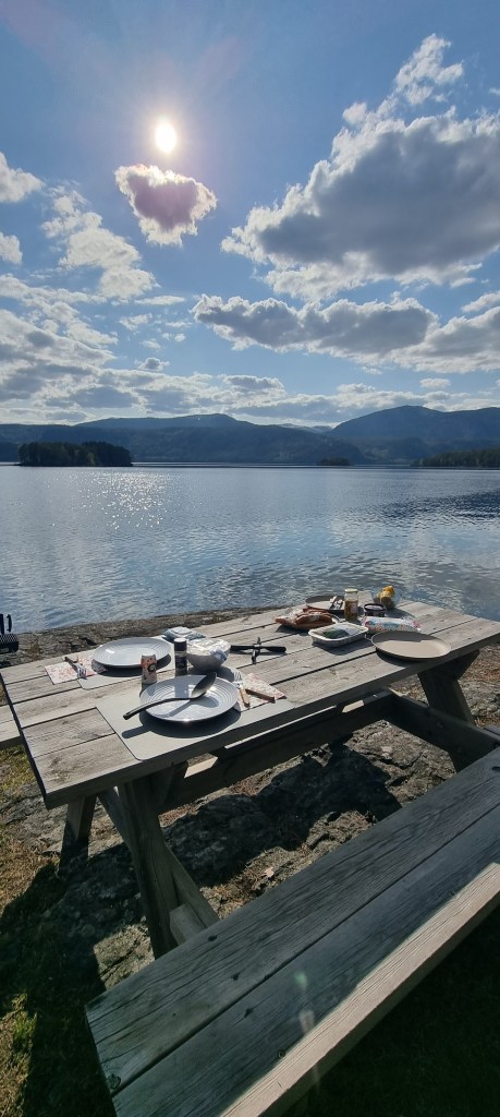 Kvelden kom og det ble kjøligere, men vi grillet og koset oss nede ved vannet.