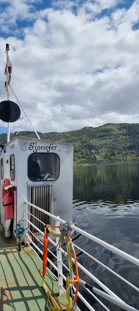 Neste dag skulle vi på en liten utflukt. Det viste seg at nemlig at Norges minste kabelferge, Fjoneferga, ikke var langt fra campingen.