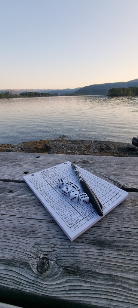 Selvfølgelig når vi er sammen blir det et slag yatzy.